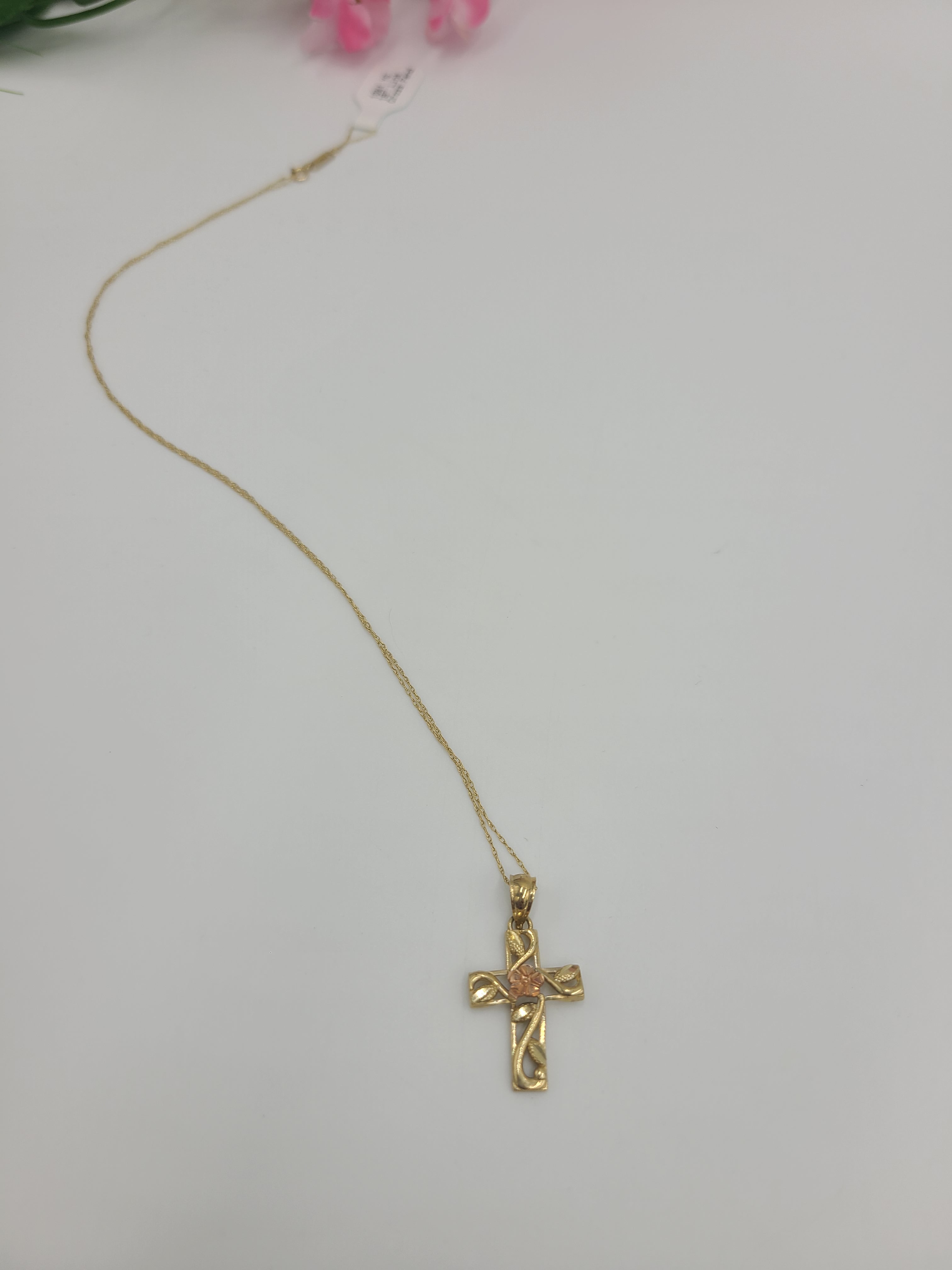 k711 Dainty Ladies 10kt Yellow & Rose Gold Cross Pendant and 18" Link Chain