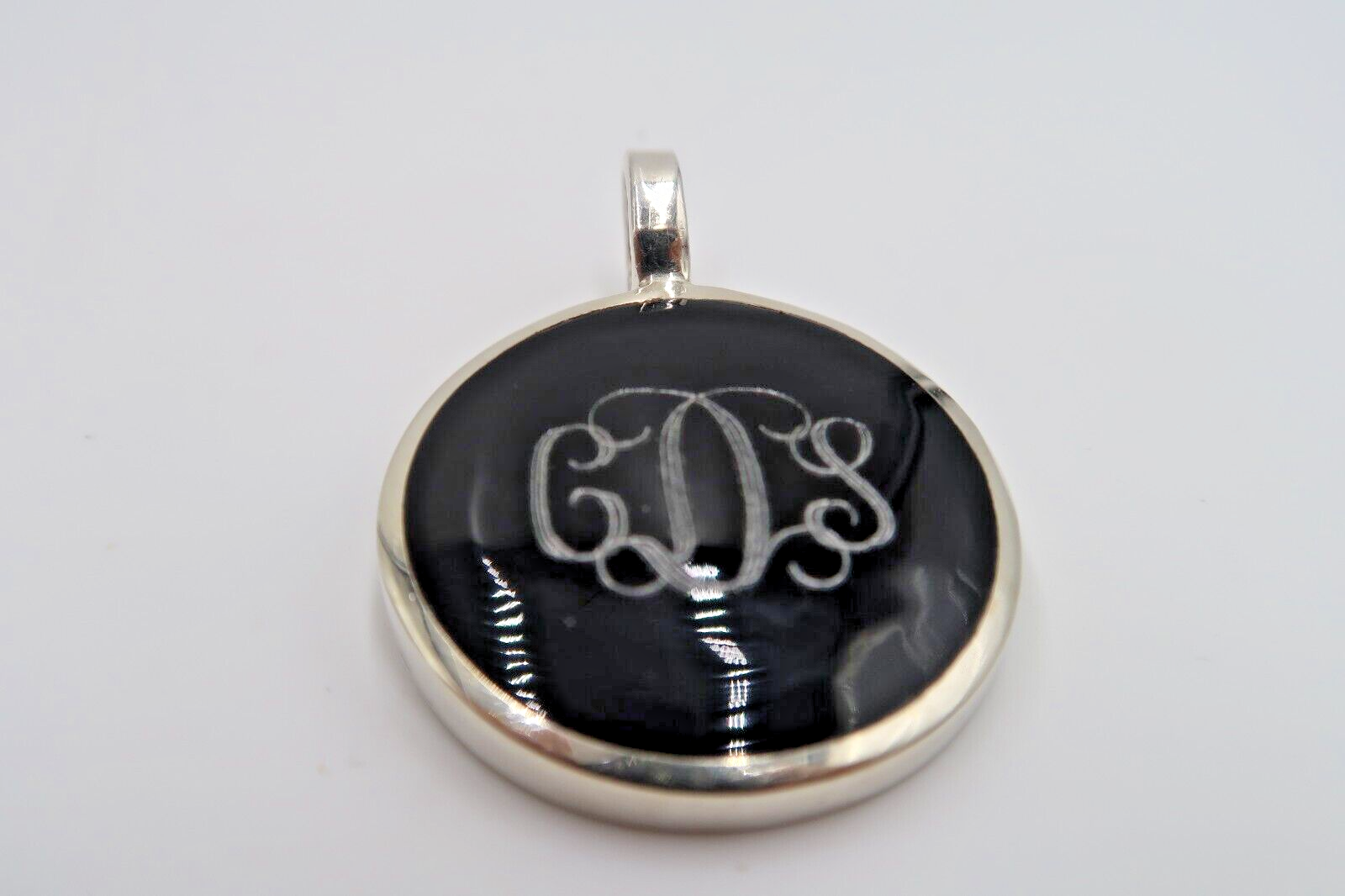 t600 Monogram pendant Estate Solid Sterling Silver Large Black Onyx