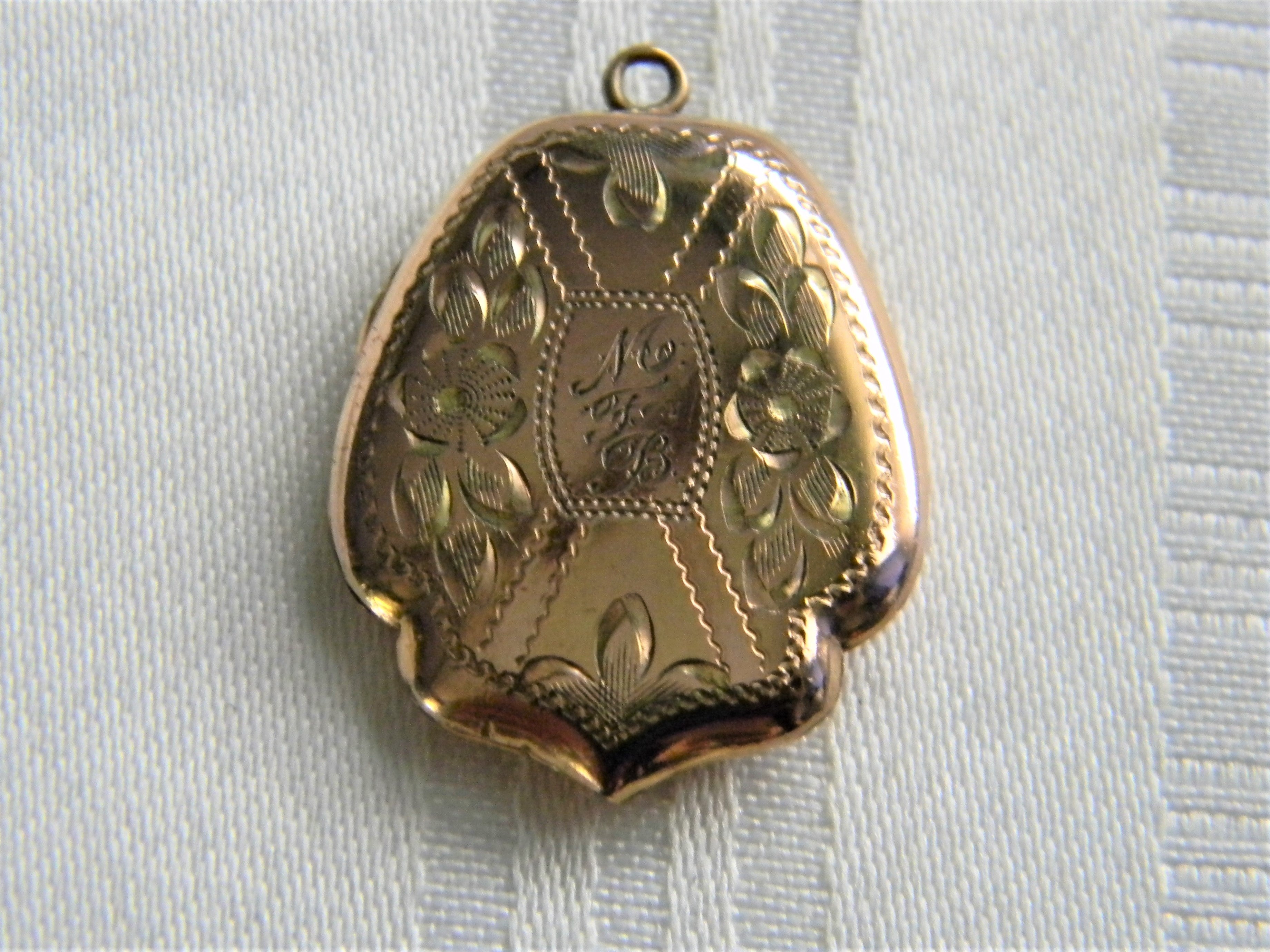 p358 Lovely Vintage Etch and Engraved Rectangle Locket Gold Filled