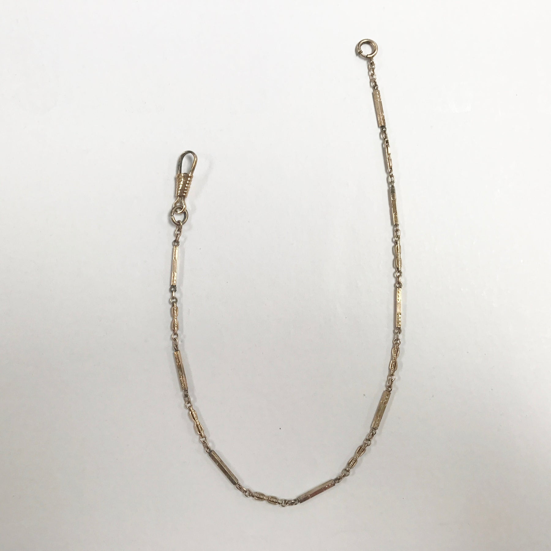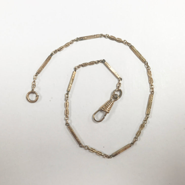 Antique Pocket Watch Vest Chain. Gold Filled Gold Tone. Button ring, spring clasp.