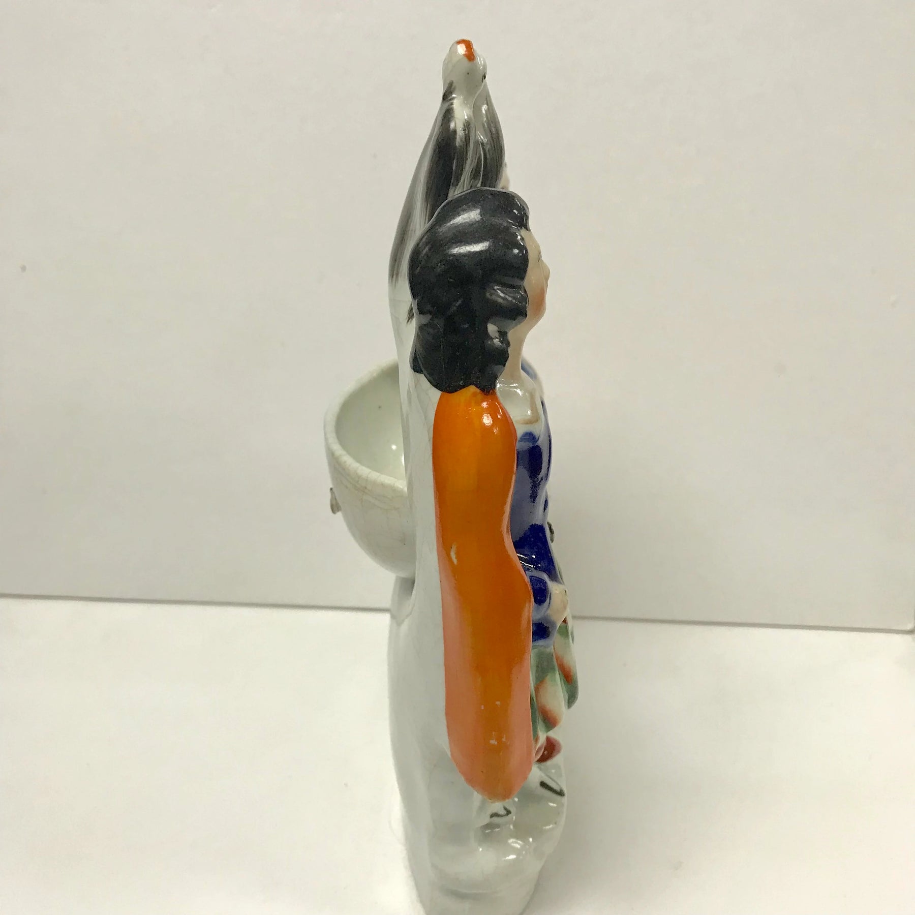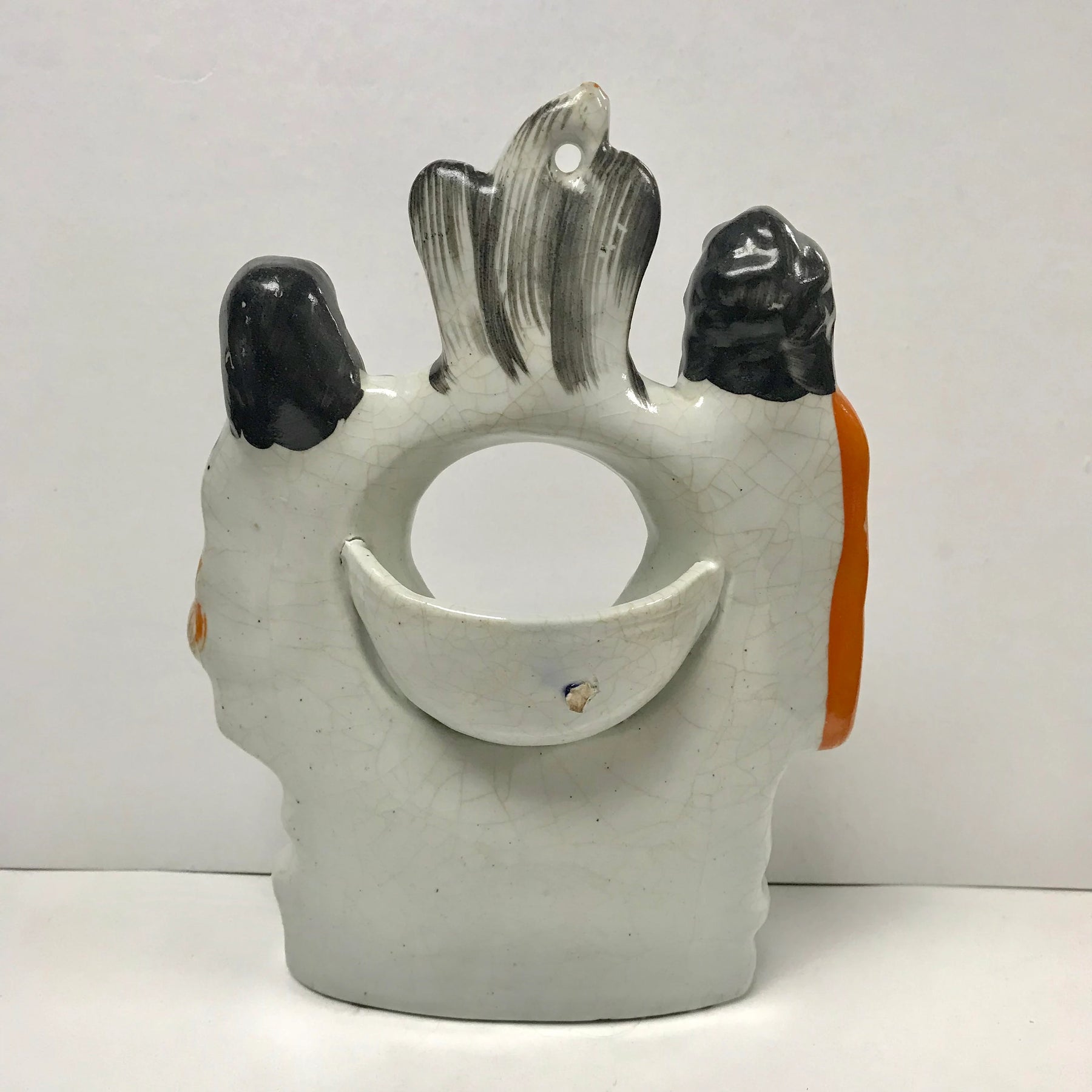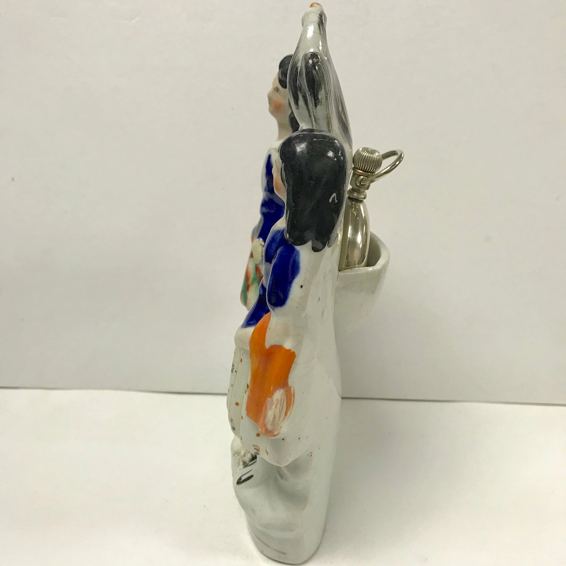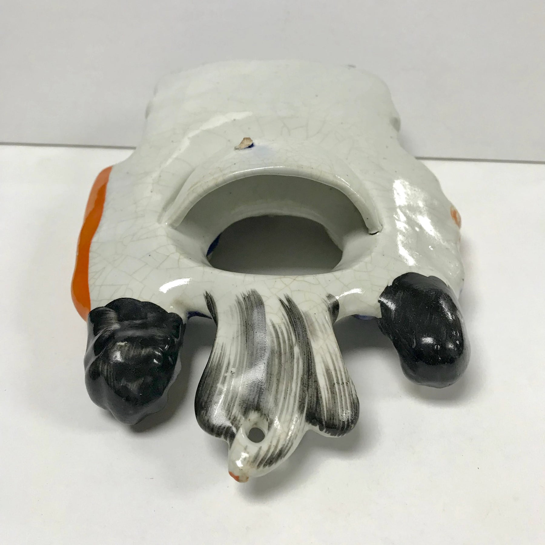f277 Antique Staffordshire Ceramic Pocket Watch Holder Stand Case Collectible