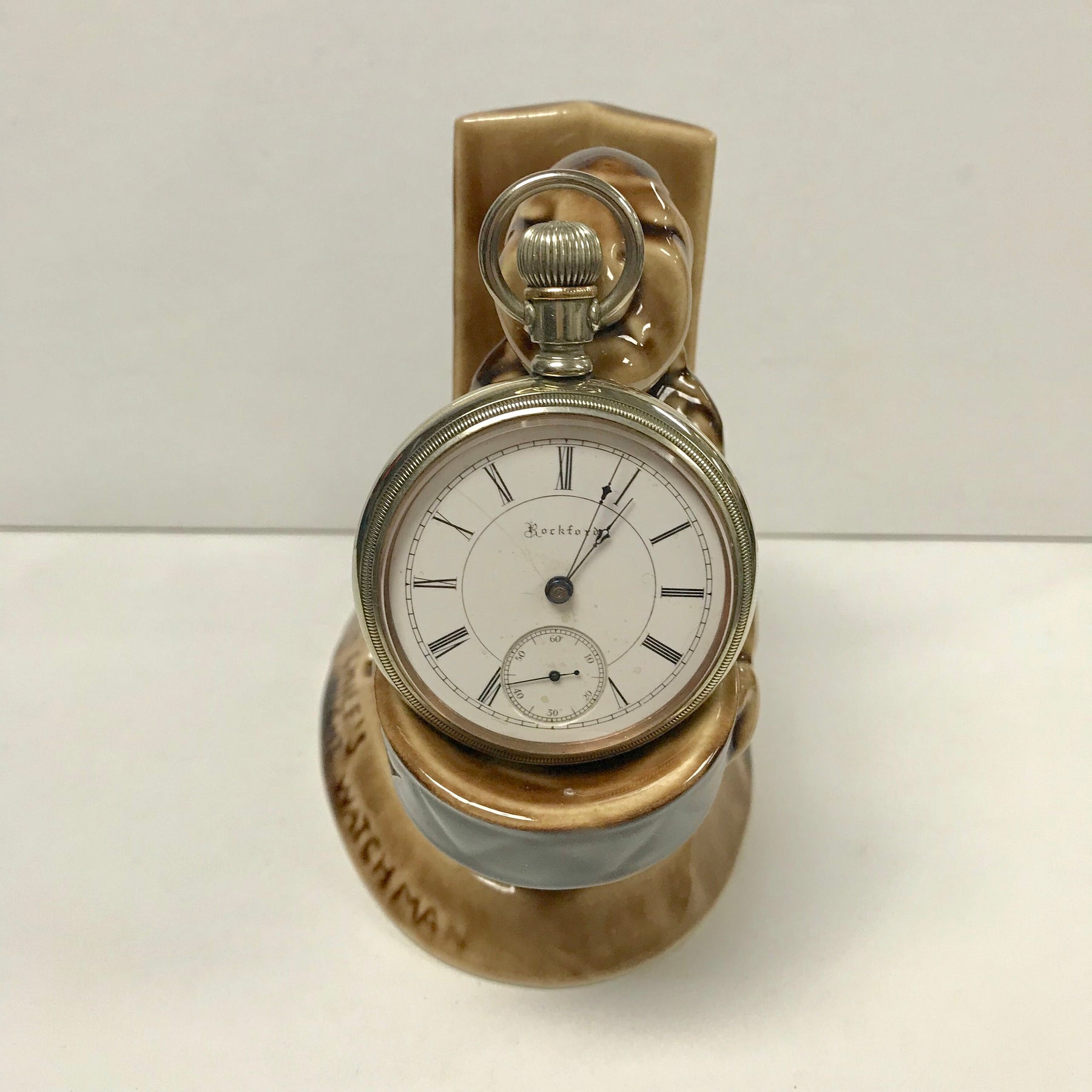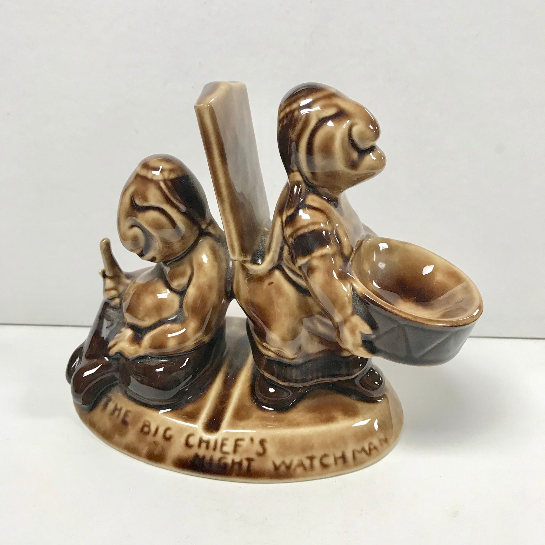 f278 Vintage Ceramic Pocket Watch Holder Stand Case The Big Chief's Watchman