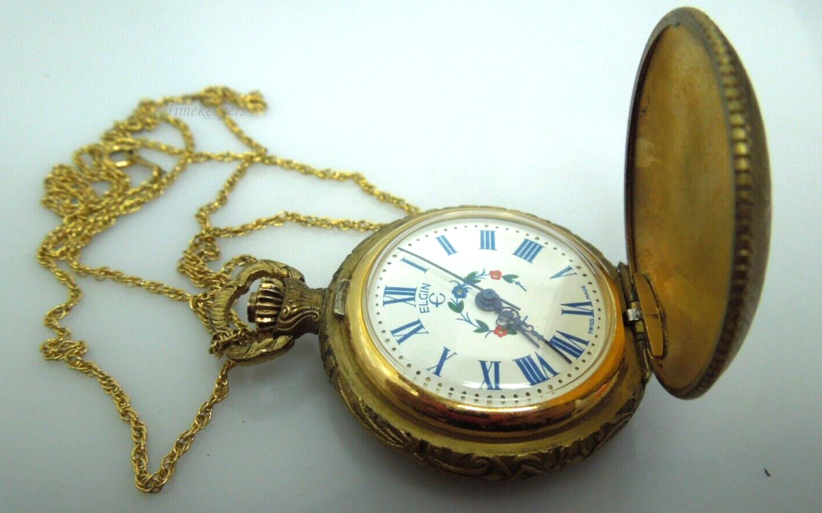 s915 RARE Elgin 17 Jewels Gold Filled Women's Pocket Watch Necklace