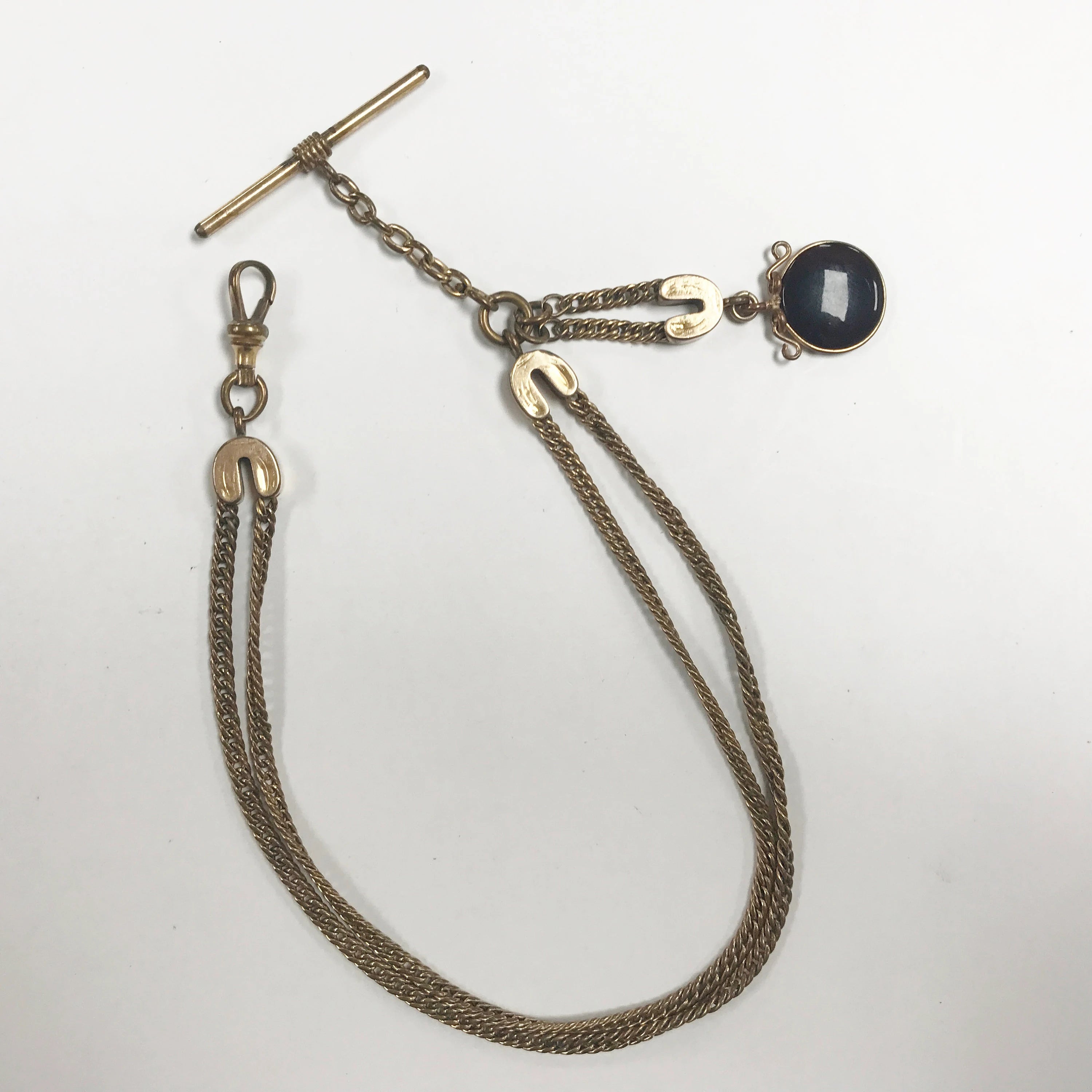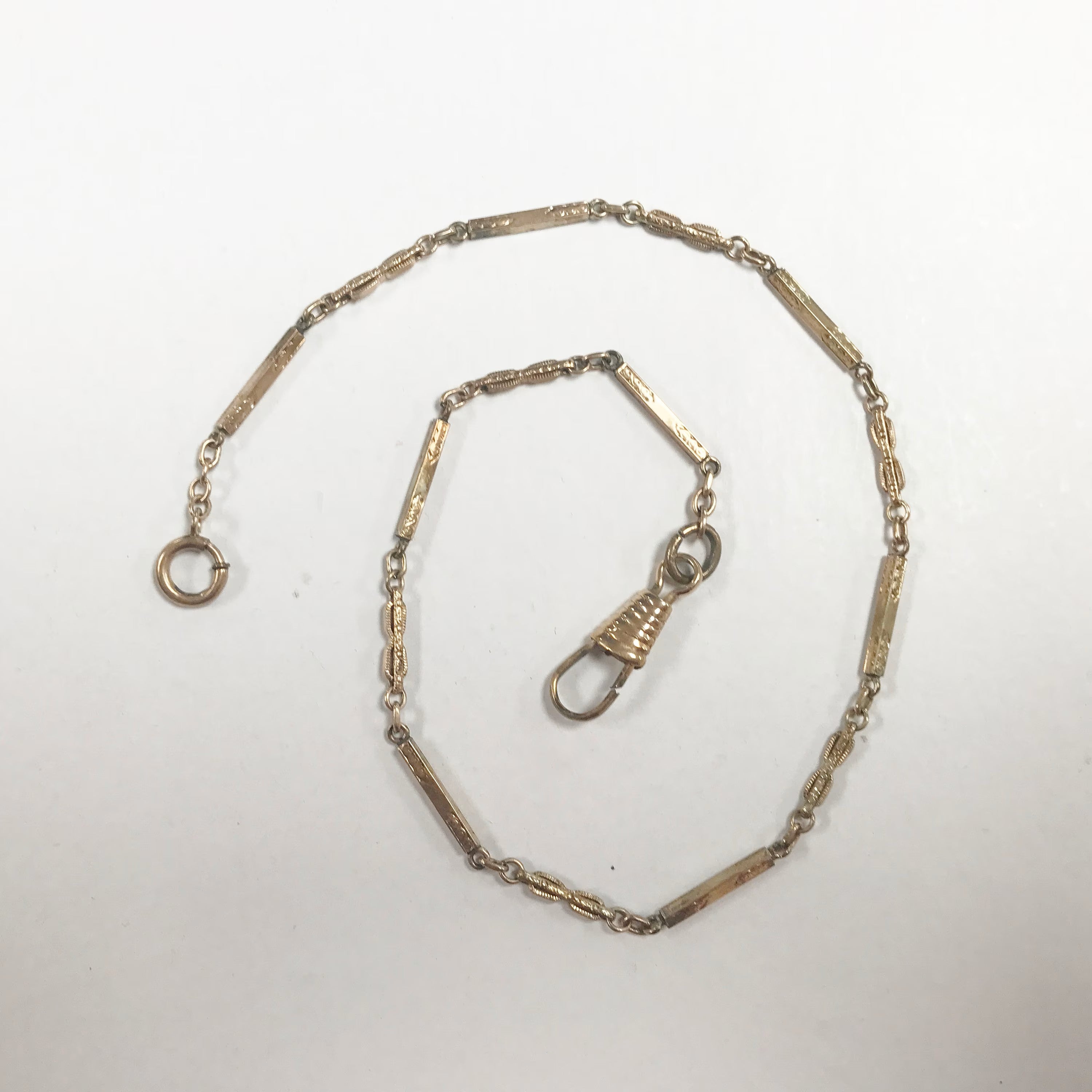 e689 Antique Vintage Gold Filled Vest Pocket Watch Chain Gold Tone 14"