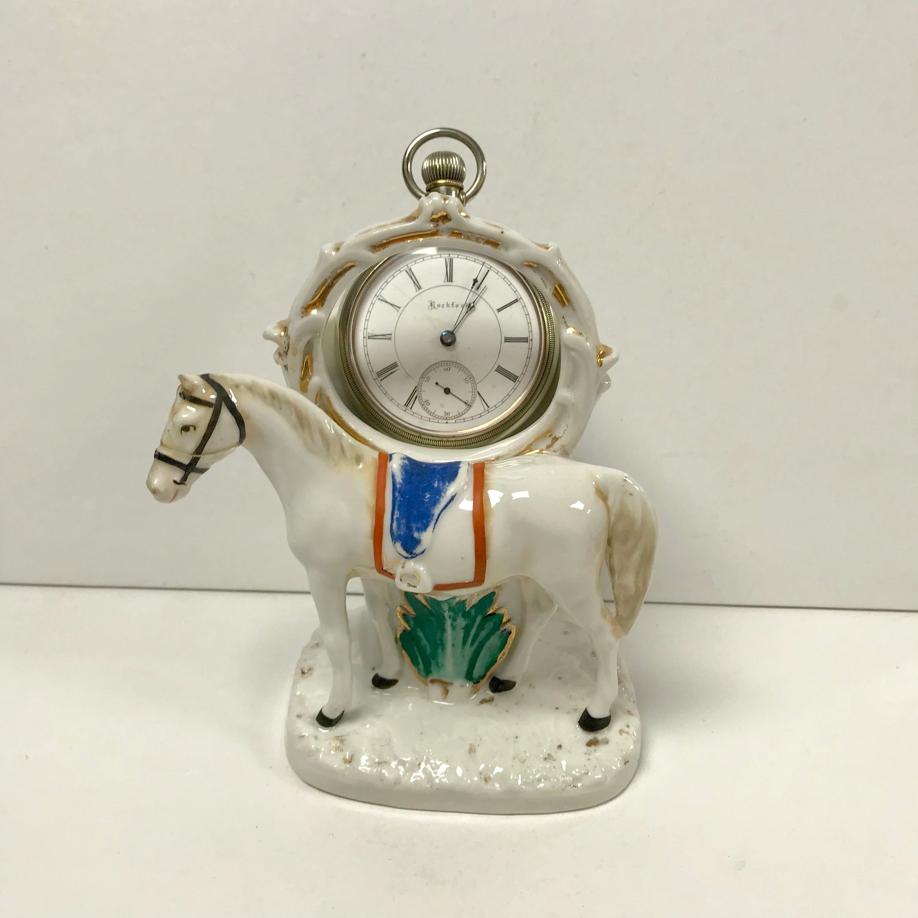f281 Vintage Ceramic Pocket Watch Holder Stand Case Collectible Horse