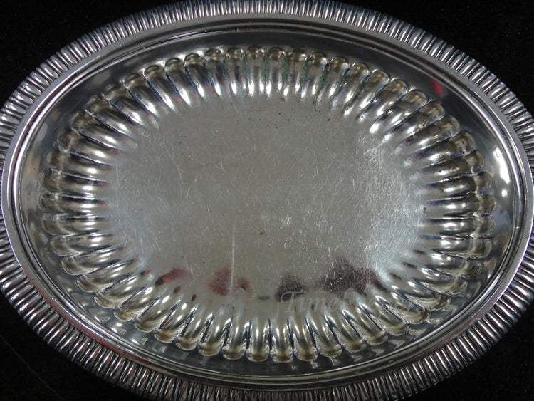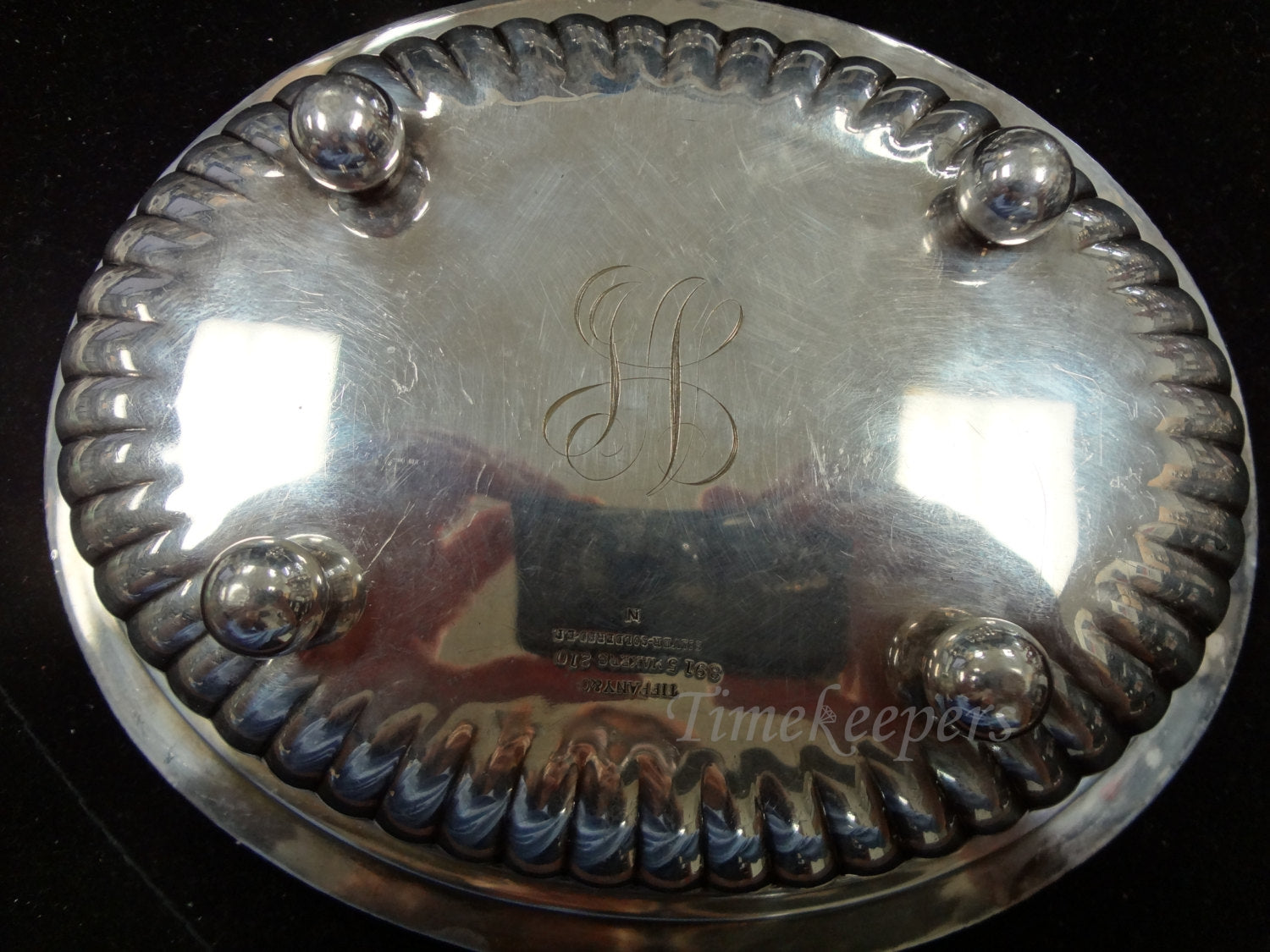 This beautiful bowl features small ball feet and ribbed sides. The bottom is stamped Tiffany & Co., 8915, Makers, 210, Silver-Soldered-E.F., N. I believe this means it is silver plate.