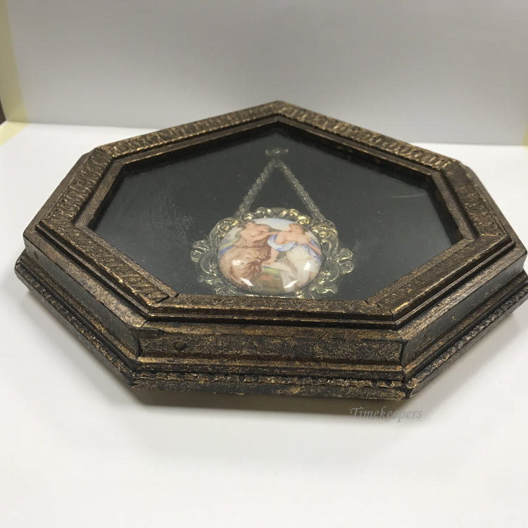 d213 Vintage Wall Art Framed Hanging Brooch Lovers Miniature Picture 1960's
