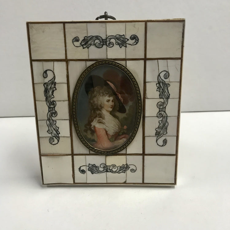 Vintage MOP Frame with Aristocratic Lady Oval Portrait. Made in France