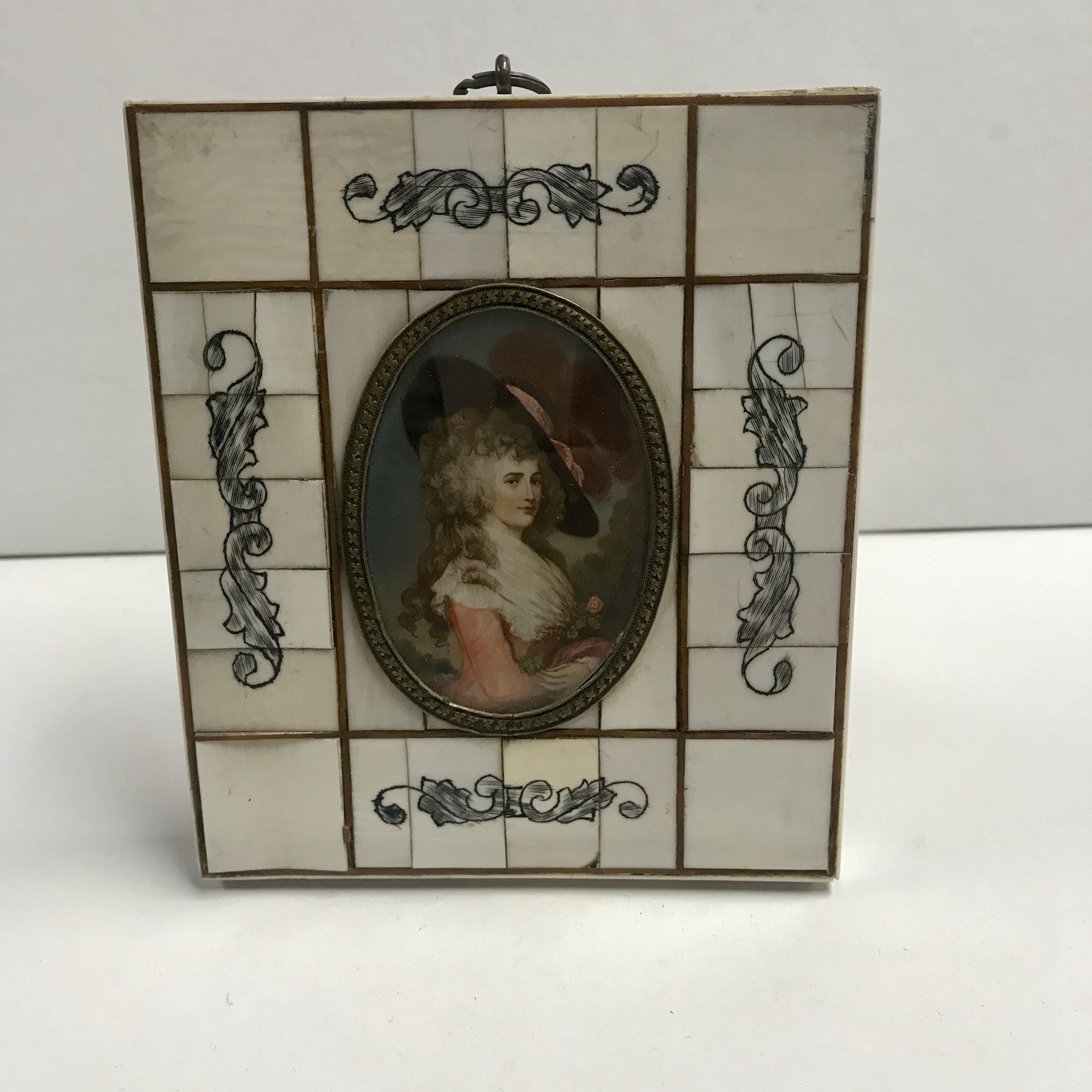 f434 Vintage Ornamental Framed French Miniature Portrait Aristocratic Lady