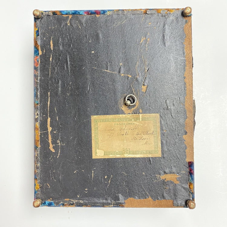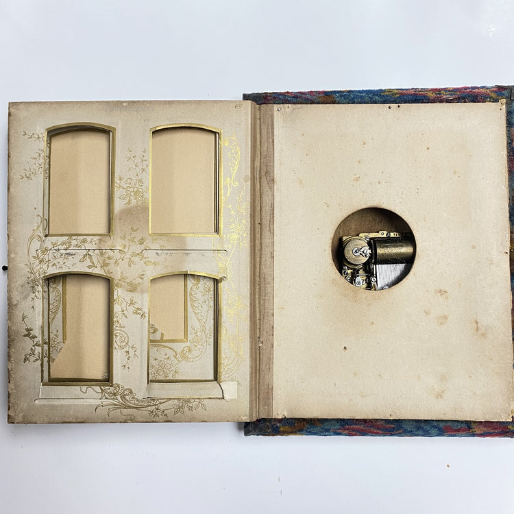 f499 Antique Victorian Velvet Photo Album Front Mirror Ornate Brass Musical Box