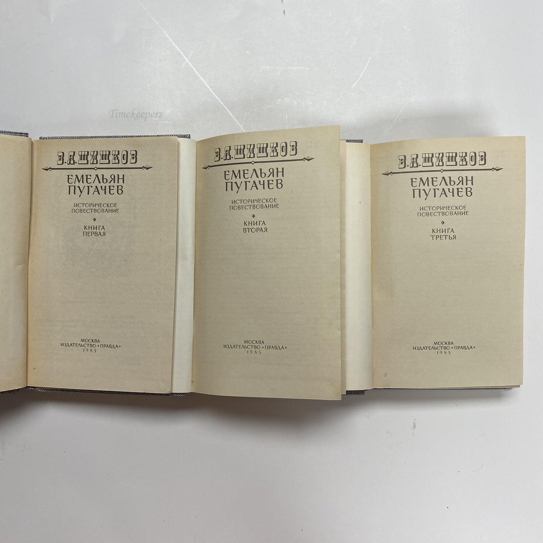 f913 Vintage 3 Books Emelian Pugachev by Vyacheslav Shishkov USSR 1985 in Russian