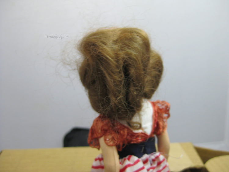 For Sale: (1) Adorable 1951 Colgate Fab Doll in Original shipping Box PLEASE READ ENTIRE DESCRIPTION BEFORE PURCHASING Please see pictures for more details! This is an adorable 1951 mail order Colgate Fab Doll in the original shipping box. Her hair is a little fuzzy from laying in the box maybe. Her dress still has vibrant colors. Cute little eyes that shut when she is laid down. Her head and arms move. She does stand very nicely all on her own. Her facial features and shoes are painted on. Specifics: