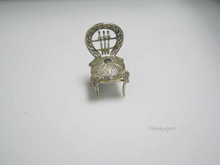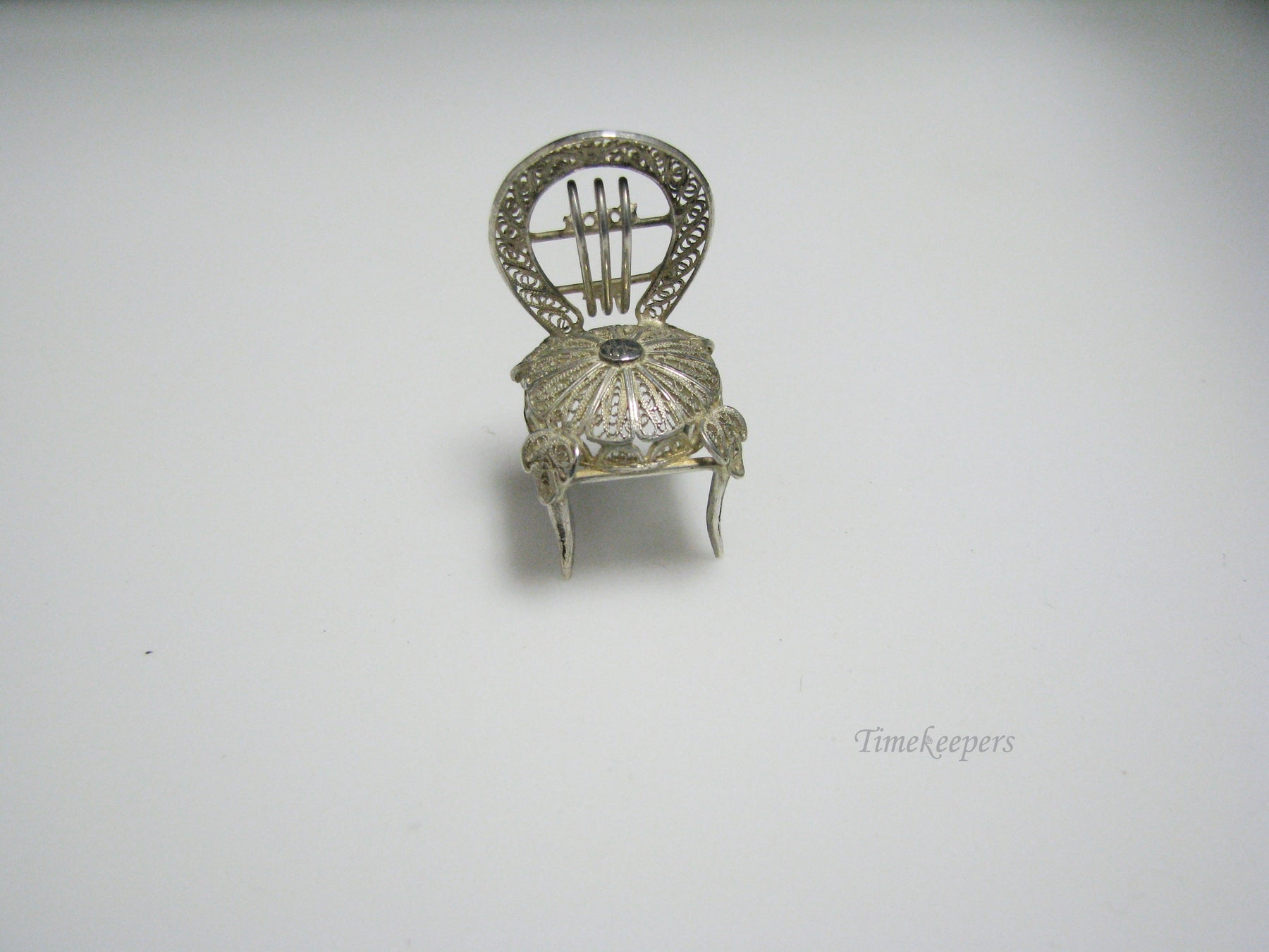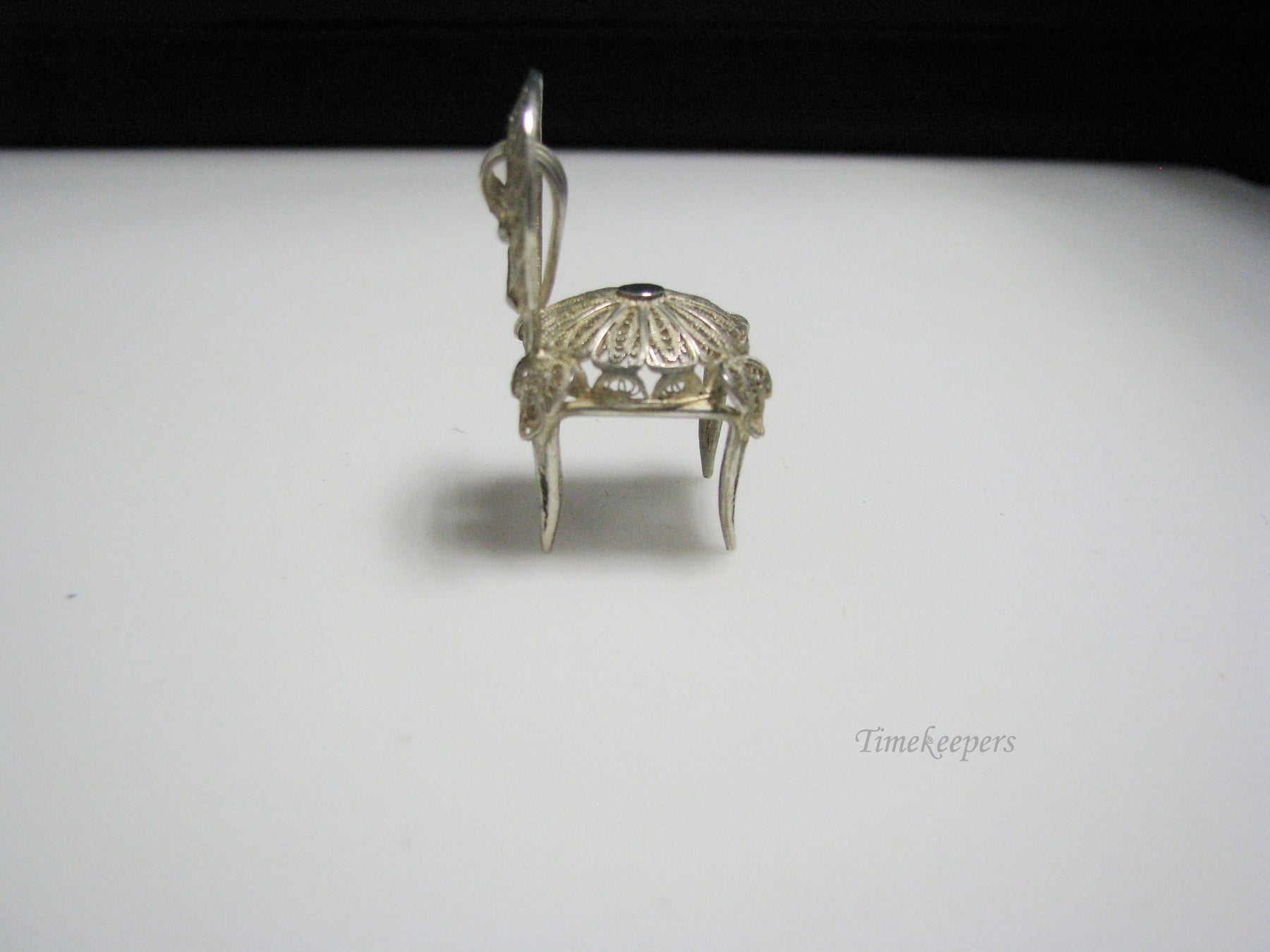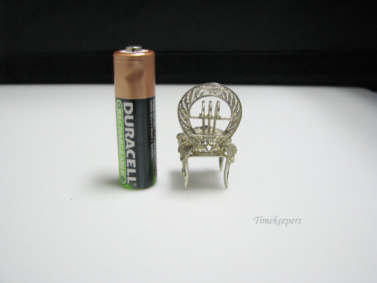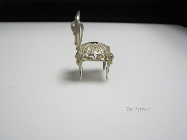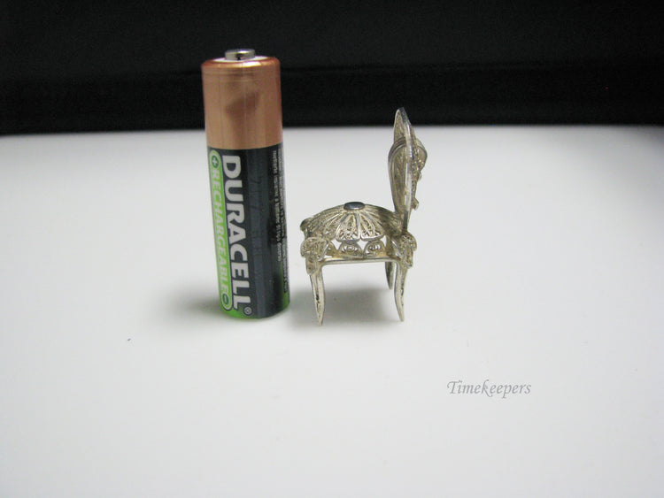 Pre-owned vintage item. Shows some tarnish. Beautiful filigree Sterling silver chair. Sold as is, as seen on pictures