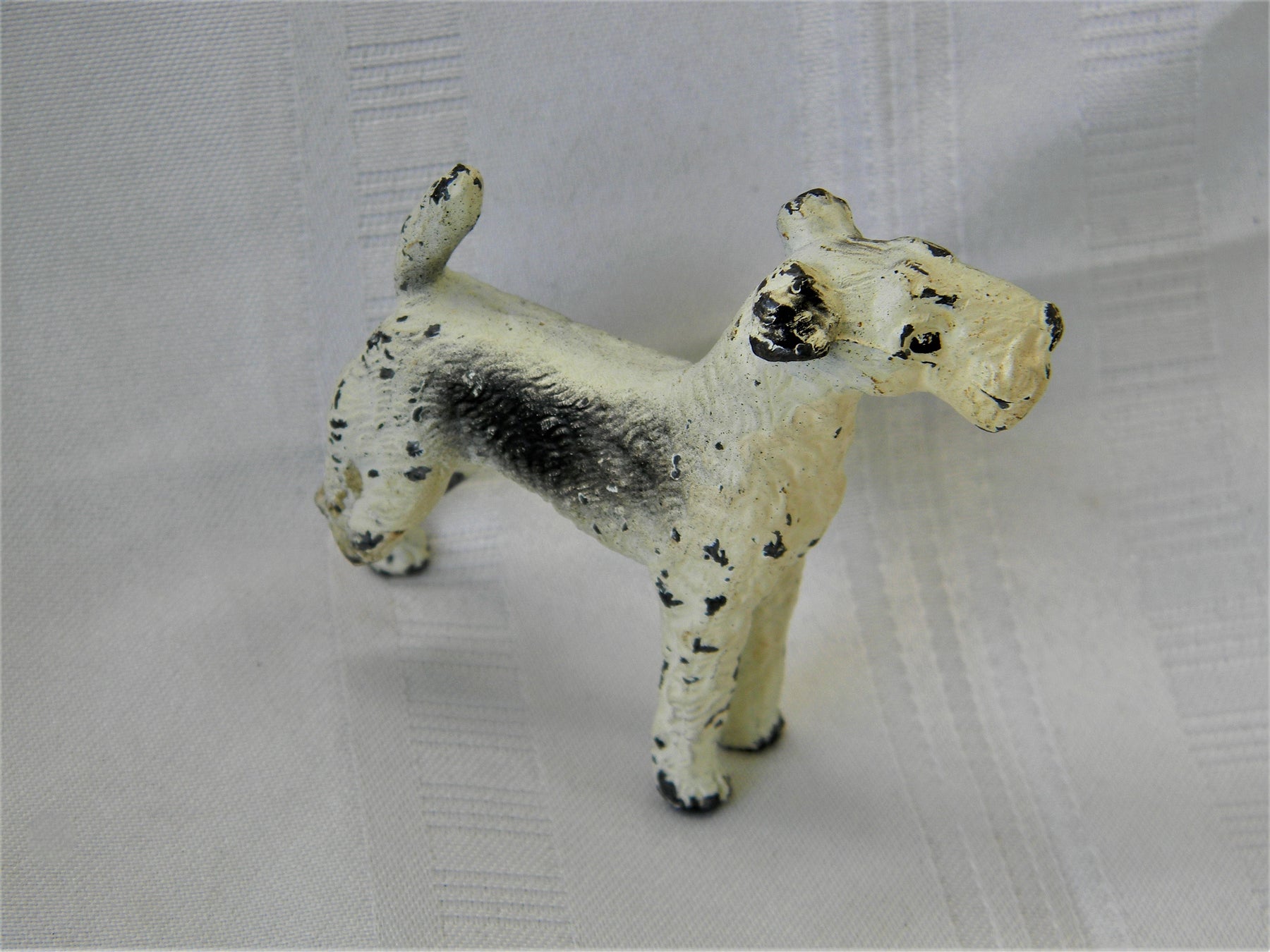 For Sale: Vintage Cast Iron White and Black Airedale Dog Statue PLEASE READ ENTIRE DESCRIPTION BEFORE PURCHASING Please see pictures for more details!
