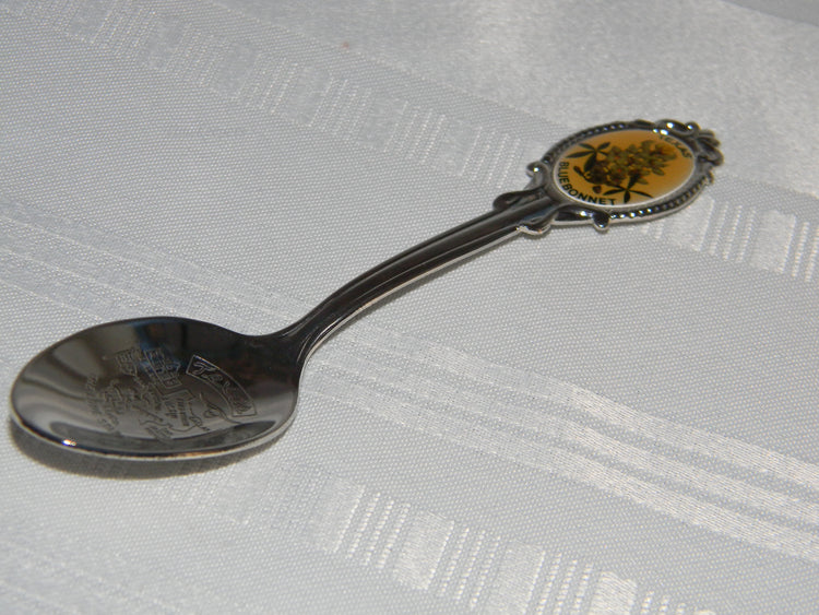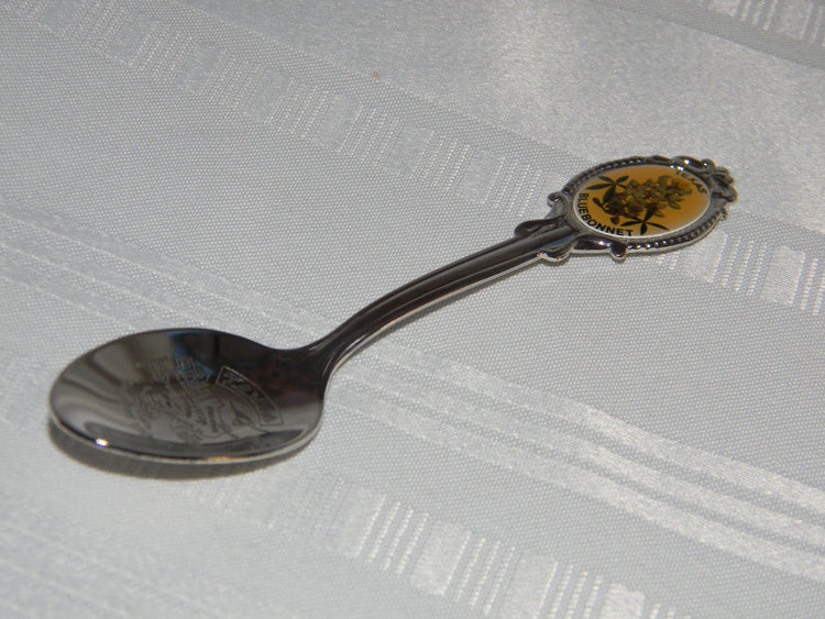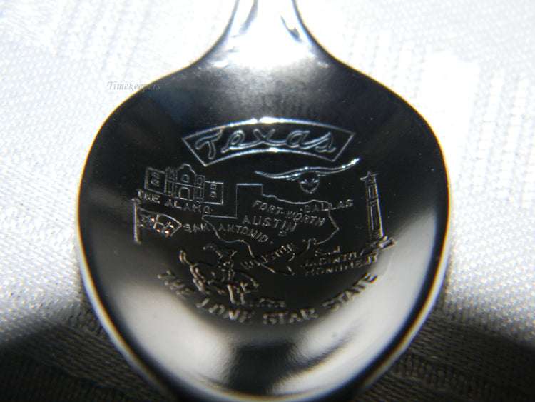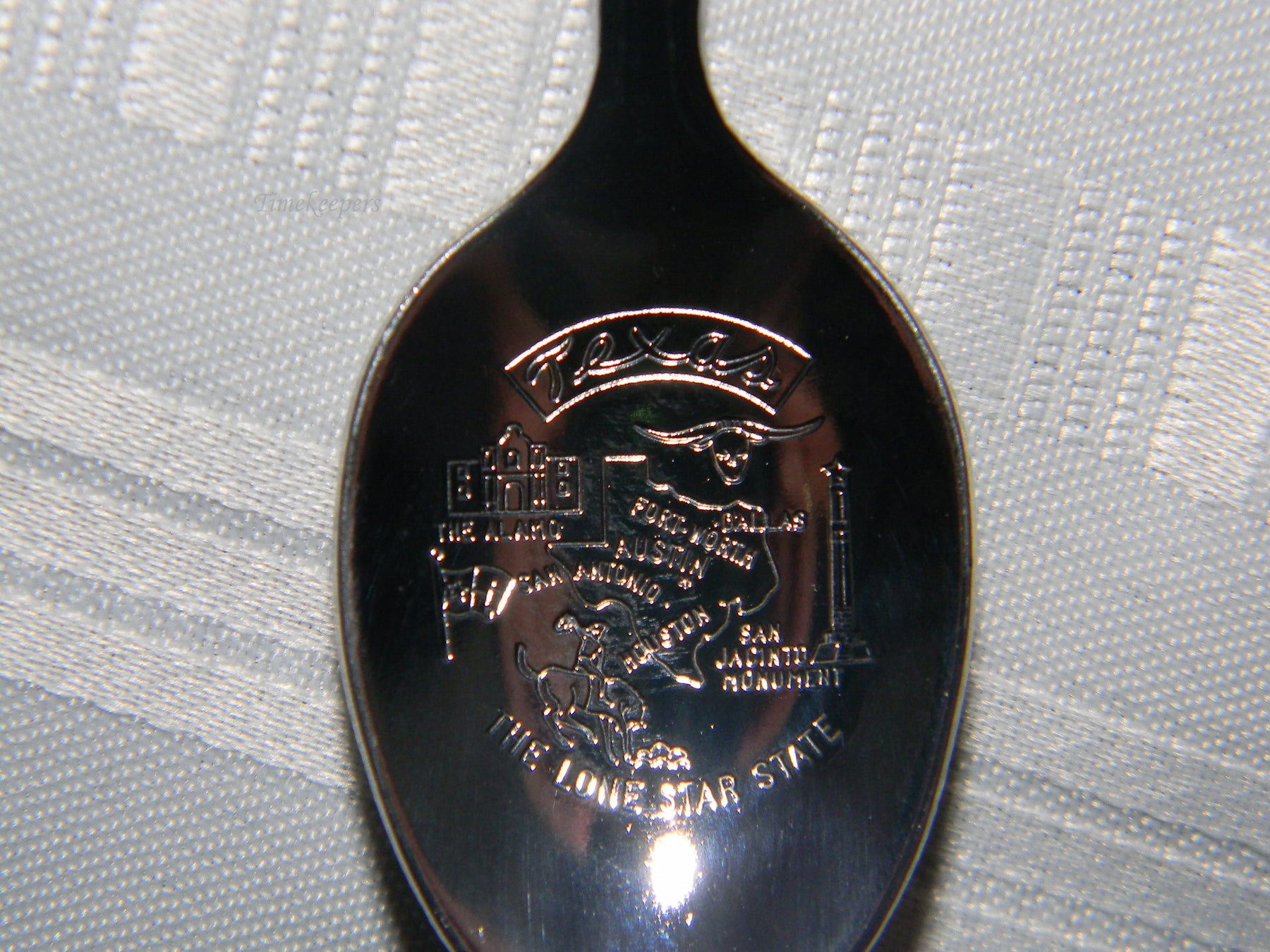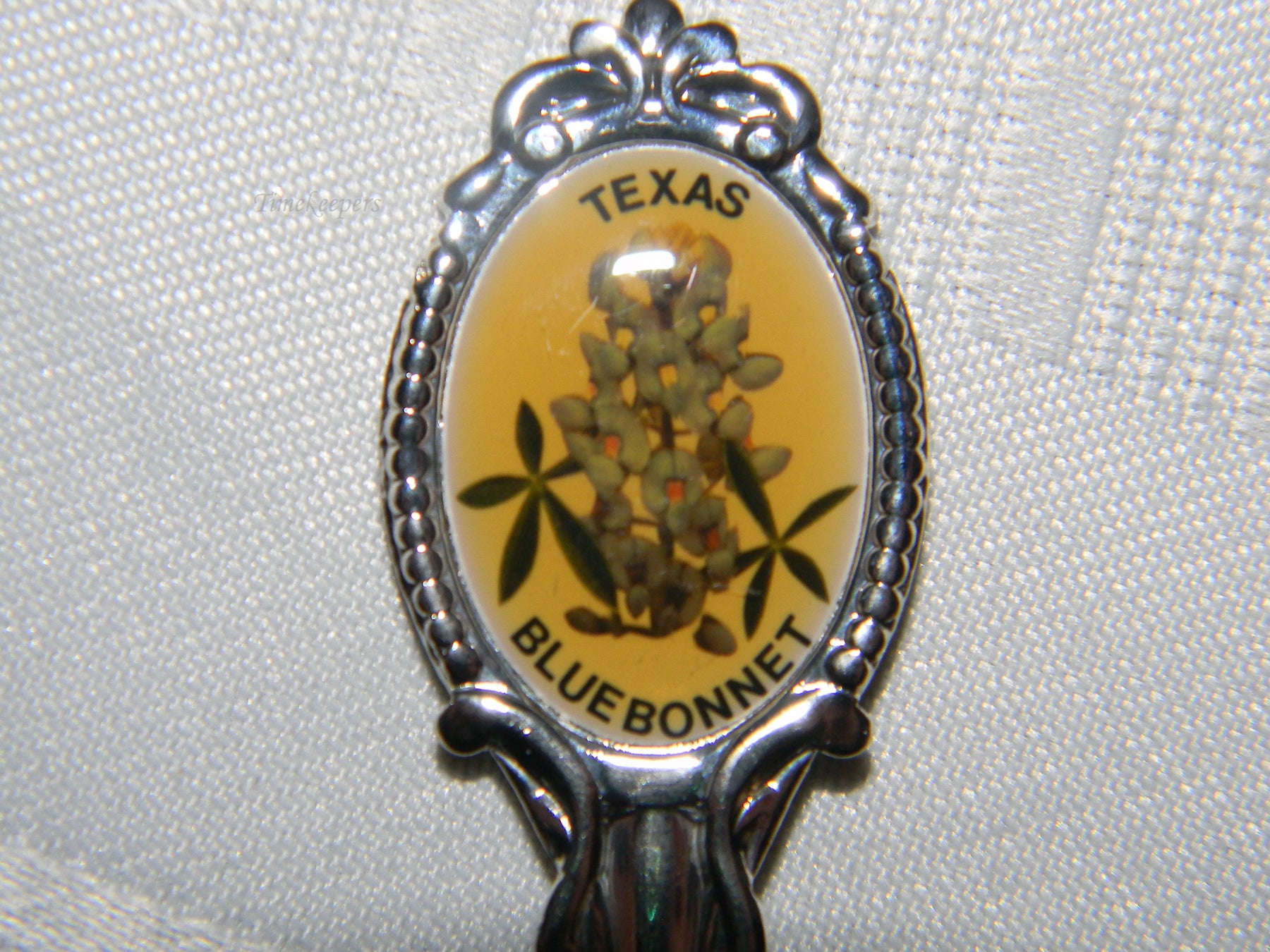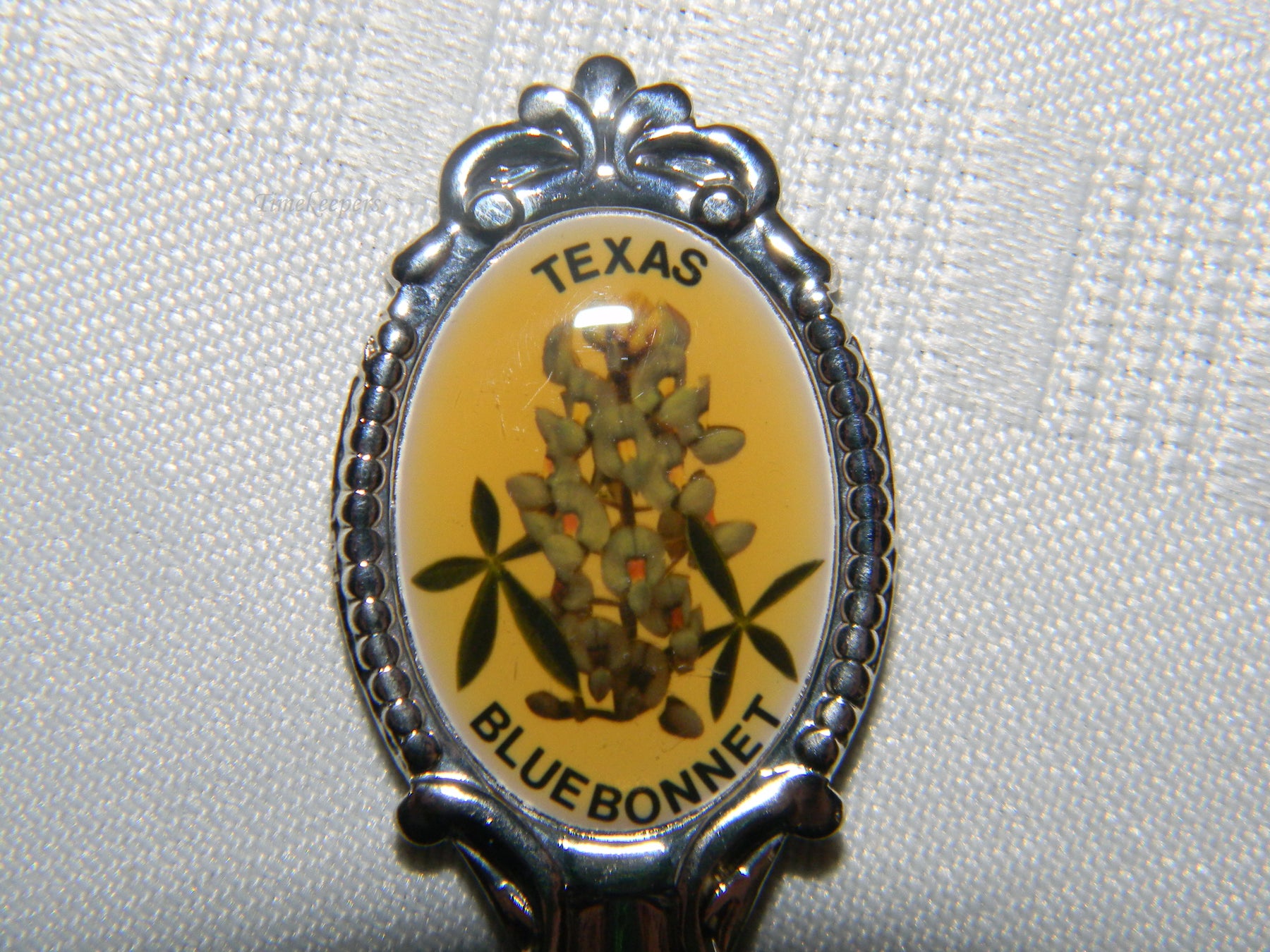 This spoon features a picture of Blue Bonnets at the top under acrylic. The bowl of the spoon is engraved with the state of Texas with highlights.