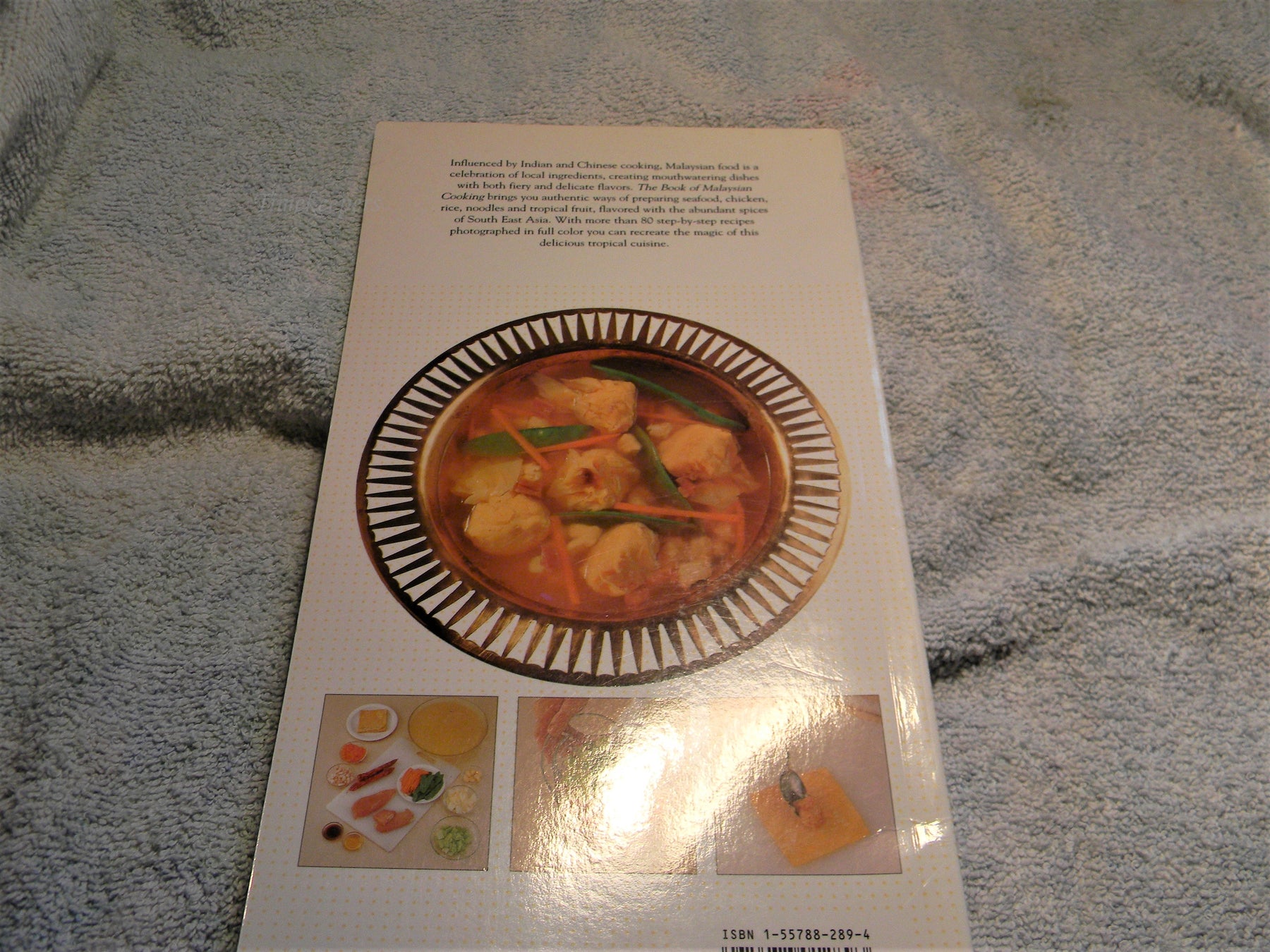 The book of Malaysian Cooking. This is a paperback book. This book gives all kinds of tips and tricks to preparing Malaysian dishes. The cover does have some marks as shown in the pictures. Does not appear to have been used much. Please see pictures for details.