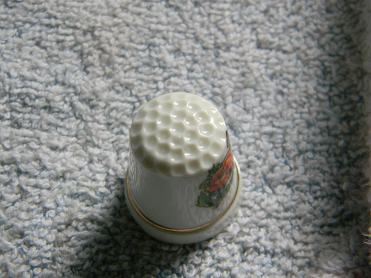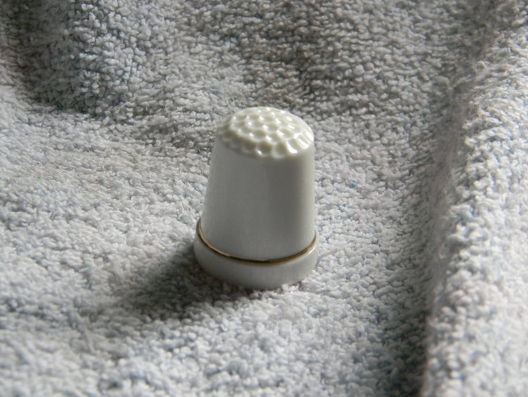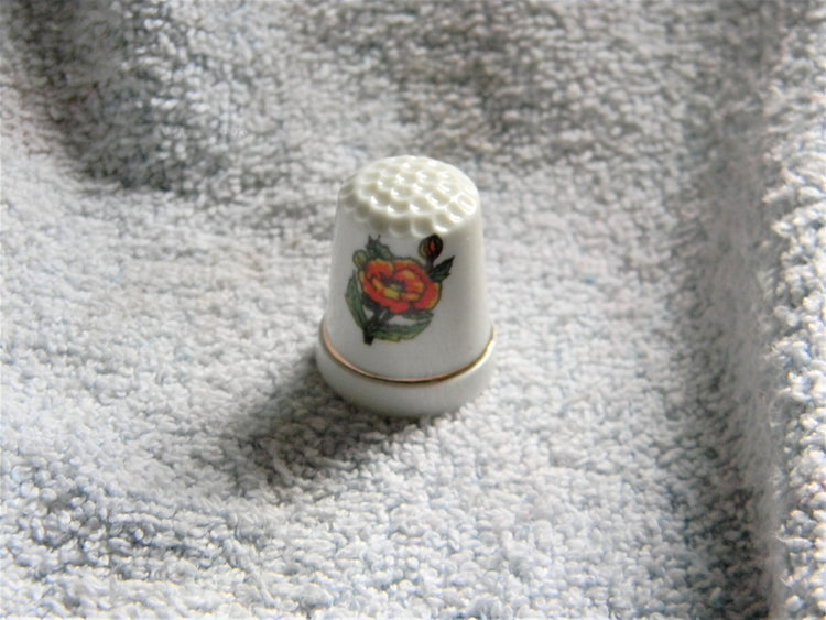 For Sale: Nice Vintage Ceramic Thimble in White with a Flower