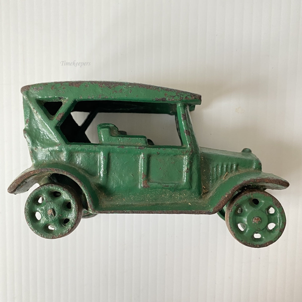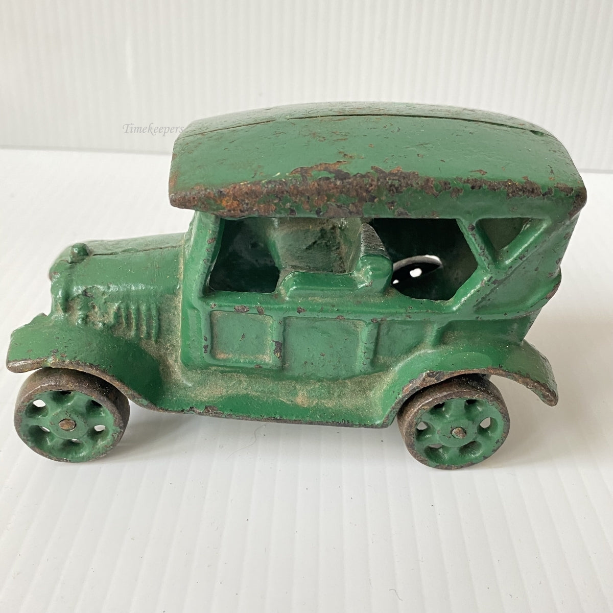 m105 Vintage Collectible Figurine Cast Iron Car Green Paint Rolling Wheels