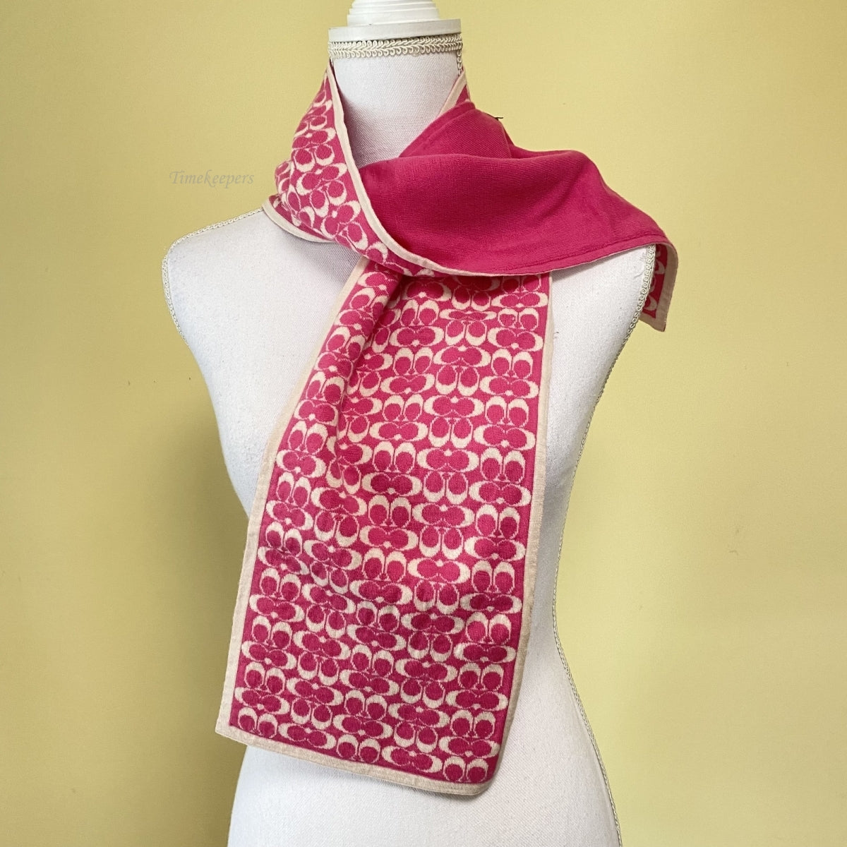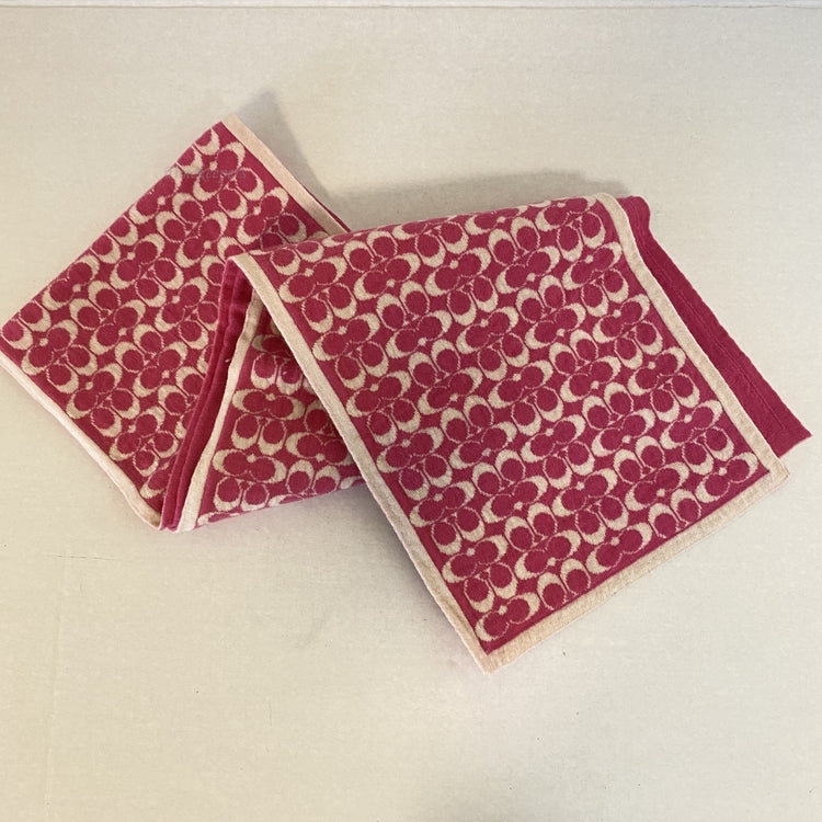 m362 Coach Signature Logo 100% Merino Wool Winter Scarf White Pink
