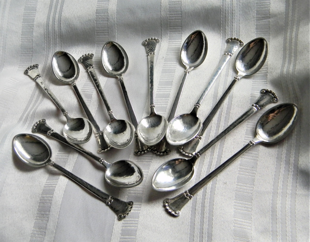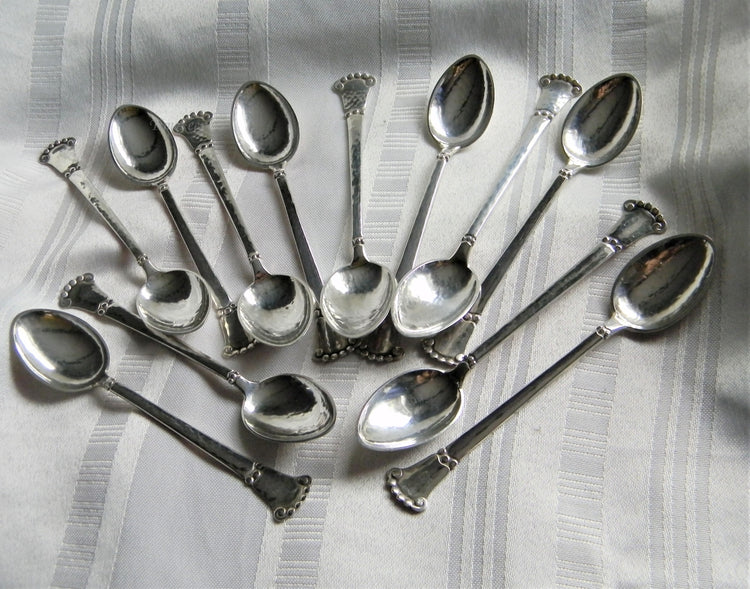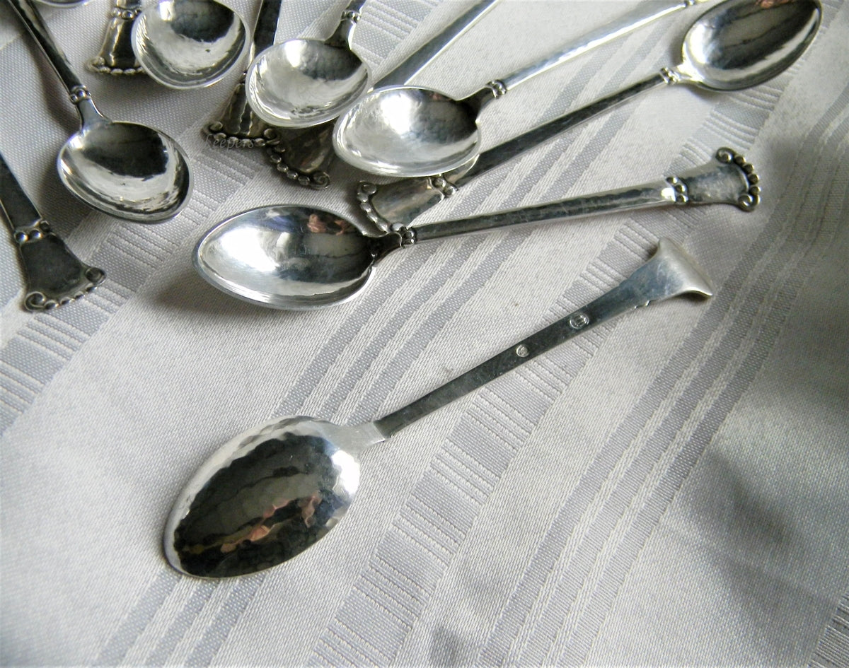 p162 Vintage Sterling set of 12 Demitasse Spoons with Hammered Pattern Danish