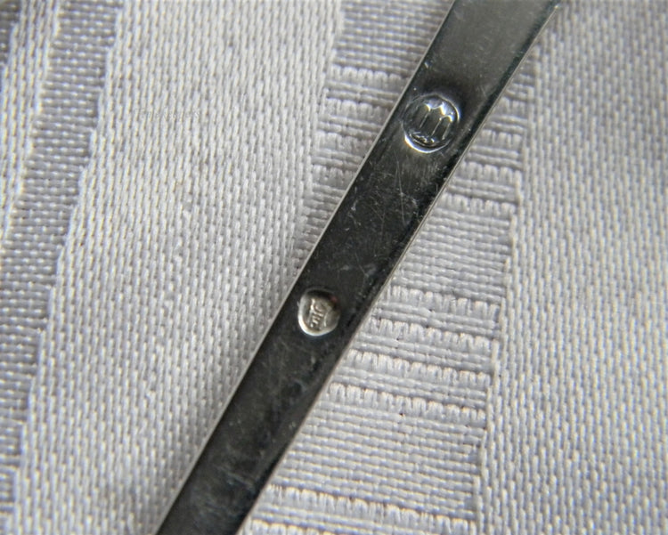 This is a set of 12 demitasse spoons. They are marked CFH with the 3 towers and a 22 at the bottom of the towers. These are the only marking on these spoons. They are Danish silversmith Georg Jensen. We could not find this pattern. The spoons do have a hammered finish bowl and handle. The spoons do test to sterling.