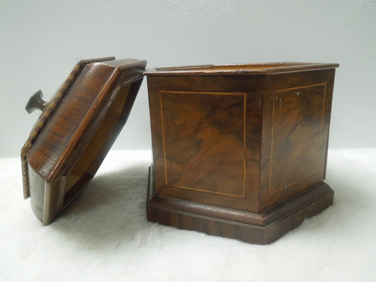 q558 Vintage Wood Trinket Box Hexagon Shape Inlay Design Removable Lid With Knob