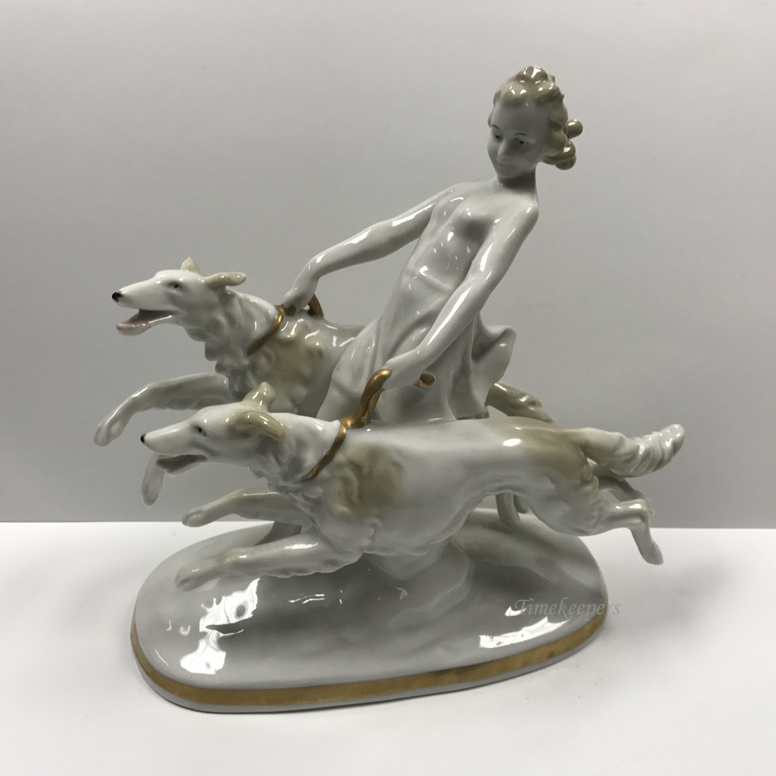 d200 Antique Original Porcelain Girl with Two Hunting Dogs Figurine Germany Made