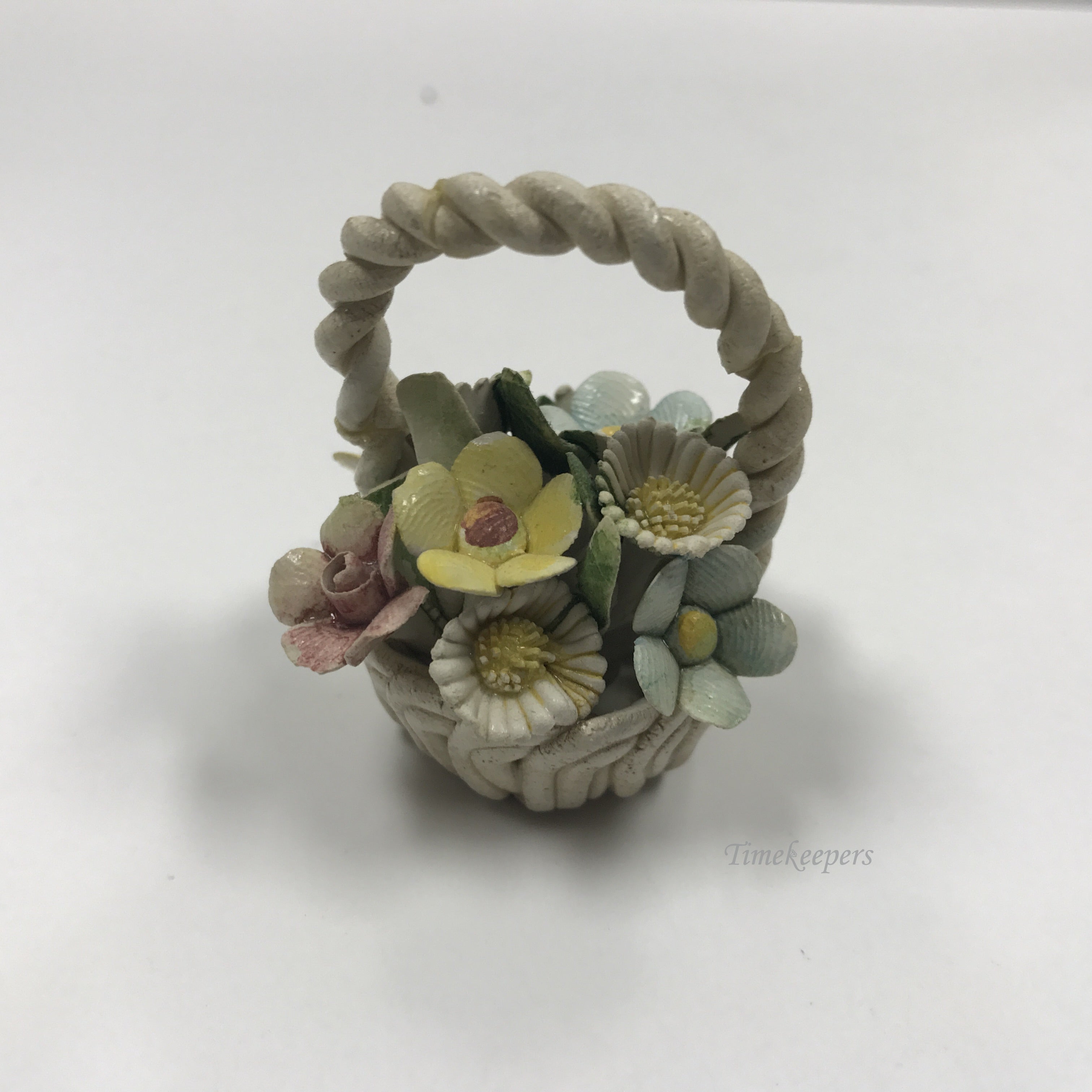 d204 Vintage Gegia Bronzini Italy Porcelain Flower Basket With Twisted Handle