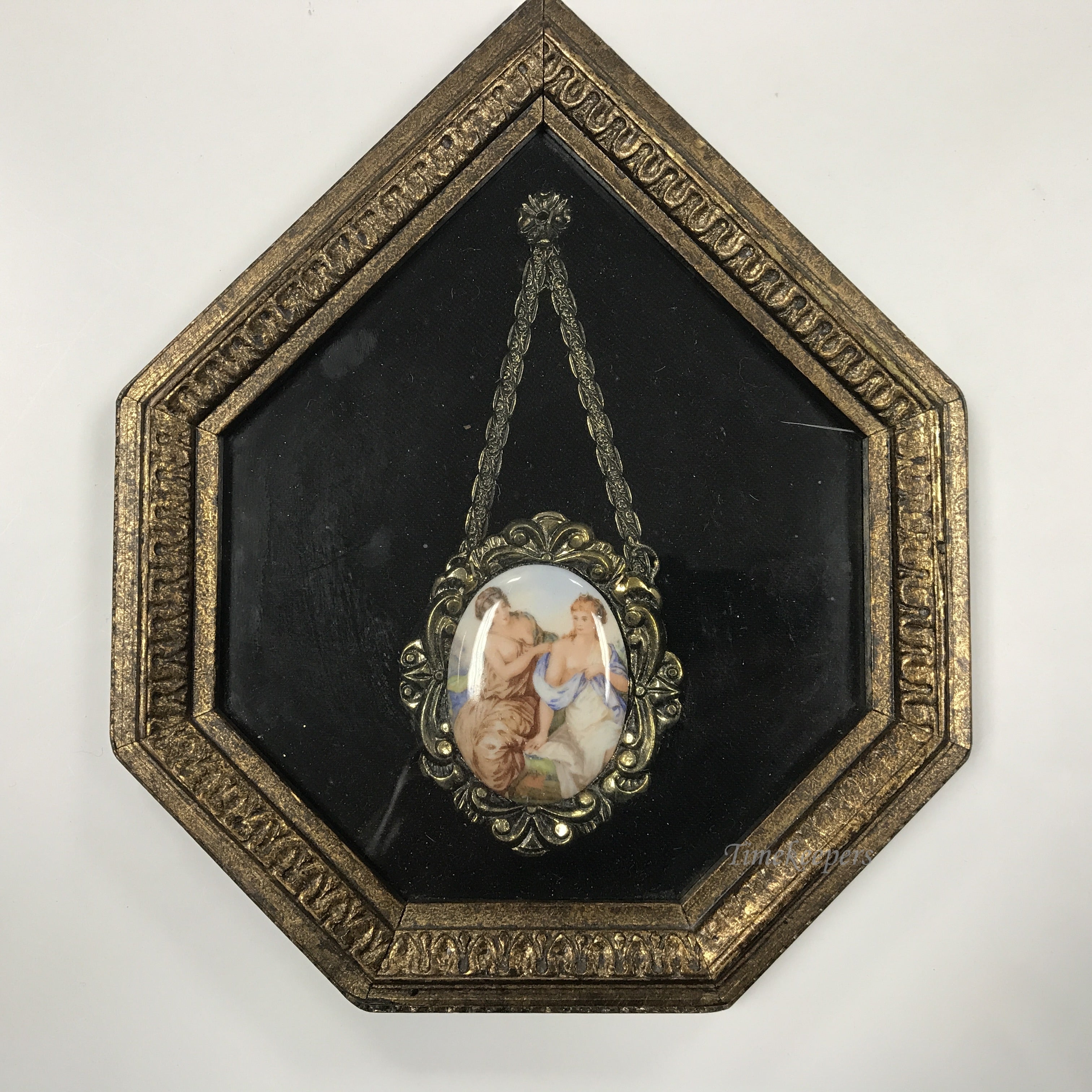 d213 Vintage Wall Art Framed Hanging Brooch Lovers Miniature Picture 1960's