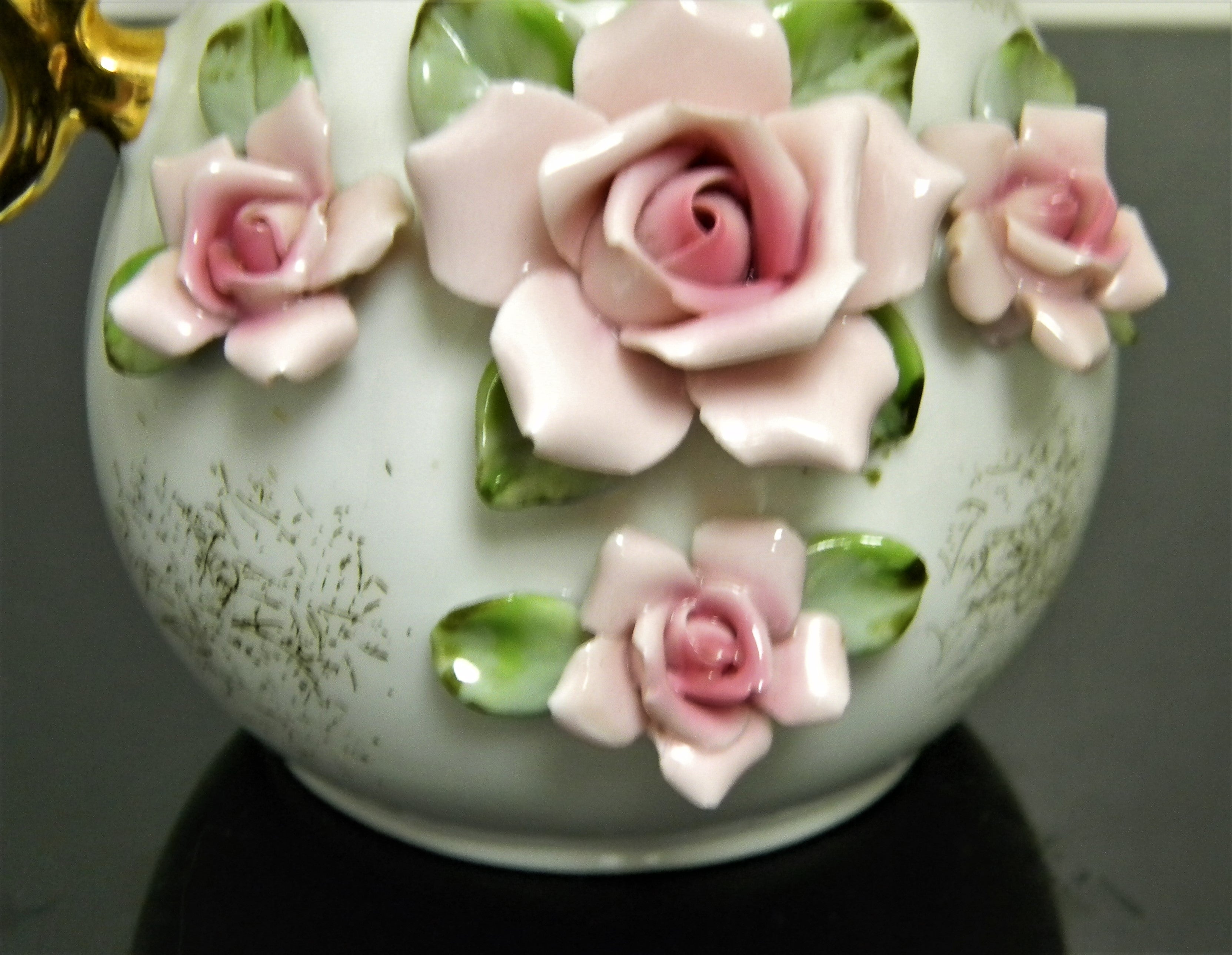 h836 Vintage Beautiful Lefton Porcelain Pitcher or Vase with Porcelain Flowers