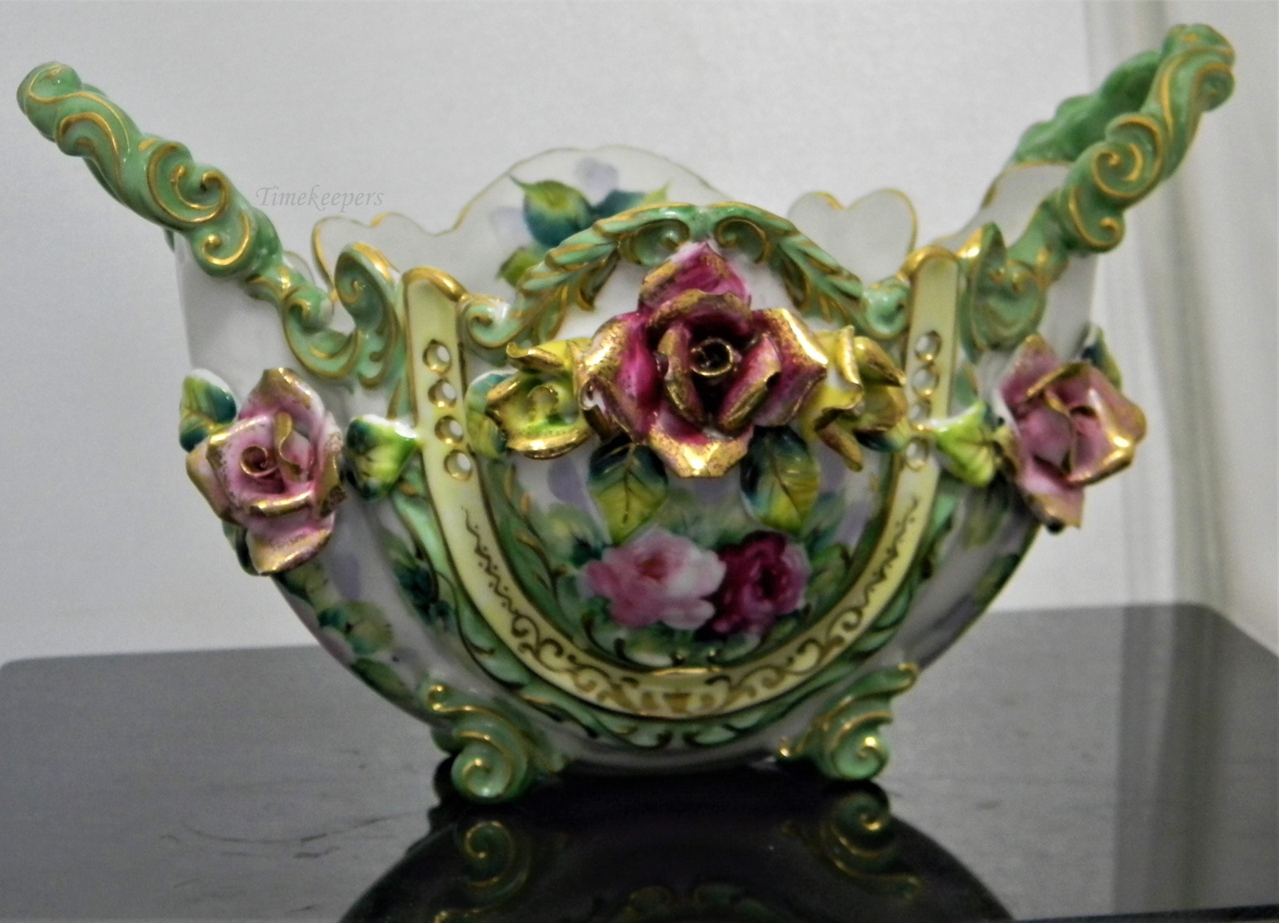 h840 Beautiful Vintage Porcelain Bowl with handles and Flowers
