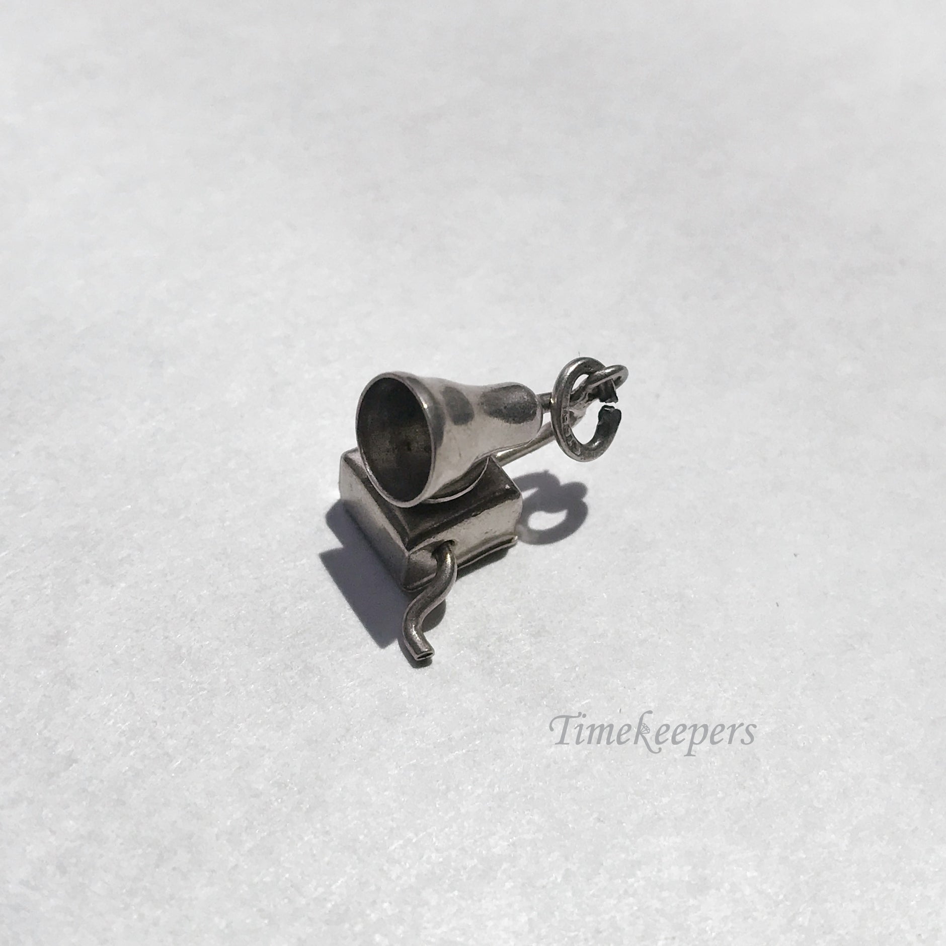 e063 Vintage Sterling Silver Old Fashion Gramophone Charm Pendant