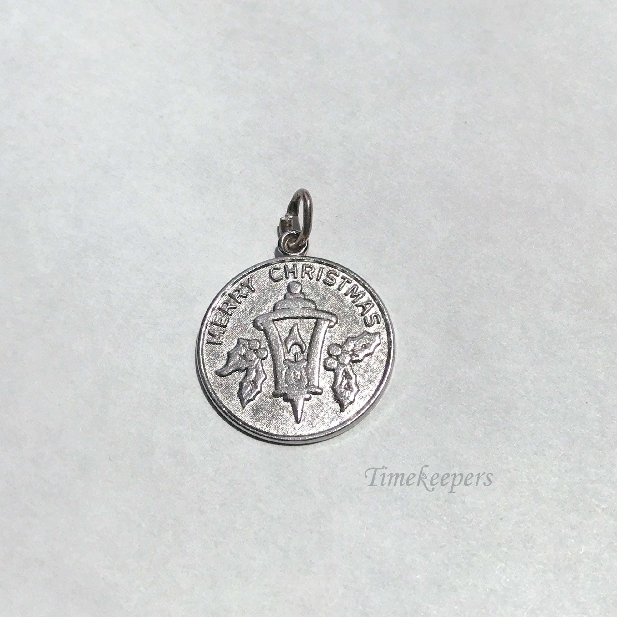 e079 Vintage Sterling Silver Merry Christmas Coin Charm Pendant