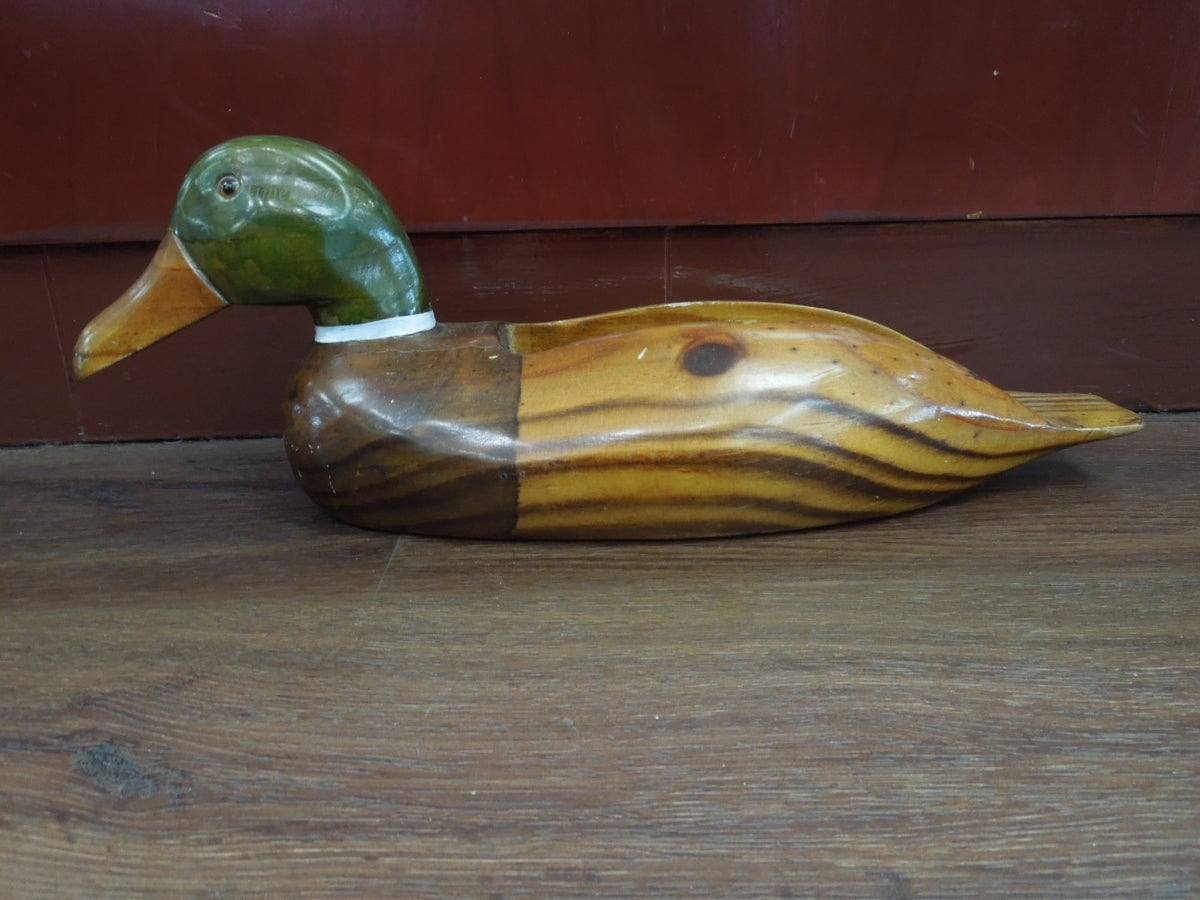 r259 Vintage Hand Carved Wooden Duck,hand painted 18" long Decorative Rare