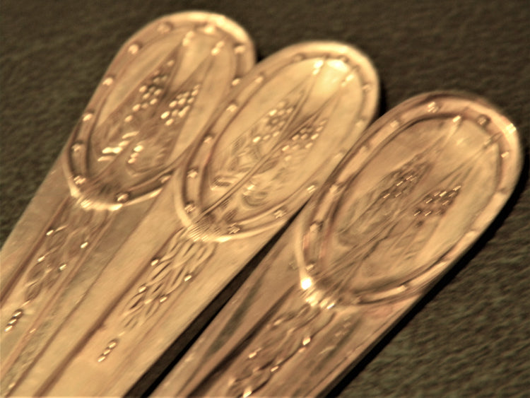 All spoons are marked with the above information. The back of each spoon features two crossed flags at the top with W.M. Rogers Mfg. Co.