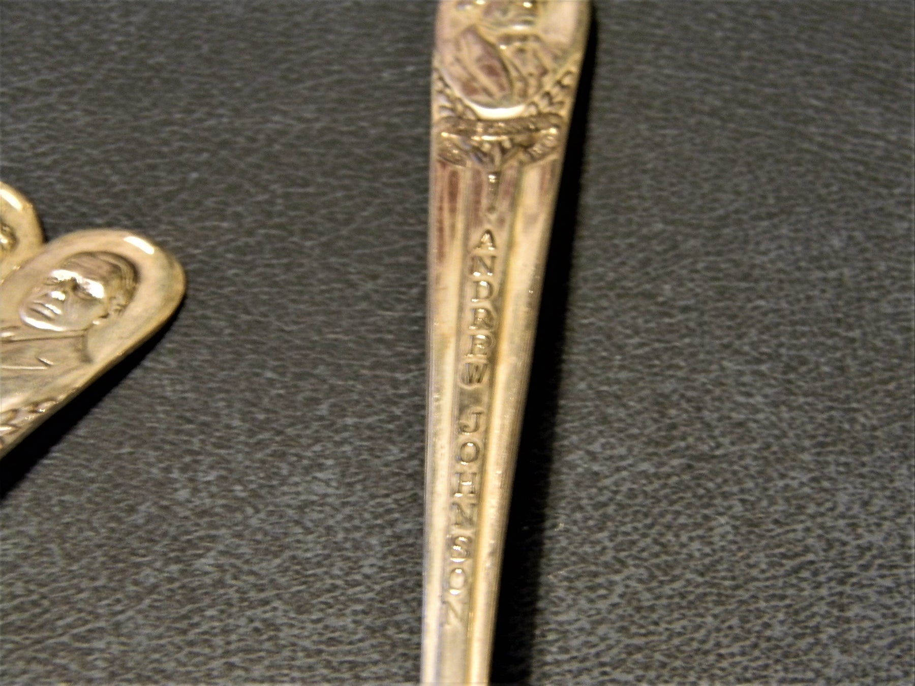 James A. Garfield 20th president, in office 1881, the bowl of his spoon features Birthplace Orange, Ohio.