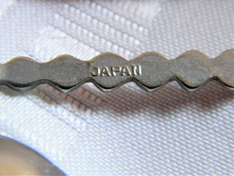 The New Orleans spoon features a painted shield at the top of the spoon. The back of the spoon is marked Japan. This spoon is dull in finish and bears a few dark spots.