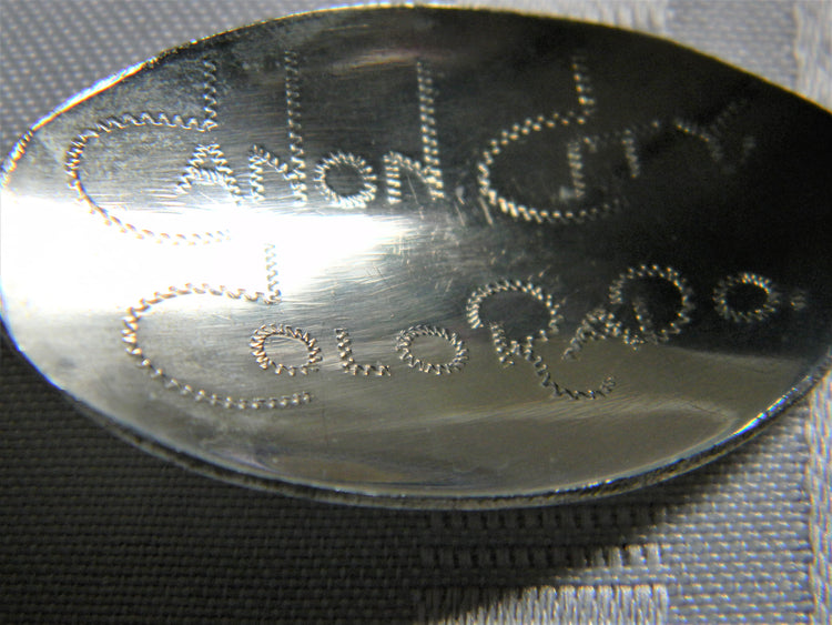 The Cannon City Colorado spoon features a plain handle, The bowl of the spoon is engraved Canon City, Colorado. There are no other markings on the spoon.