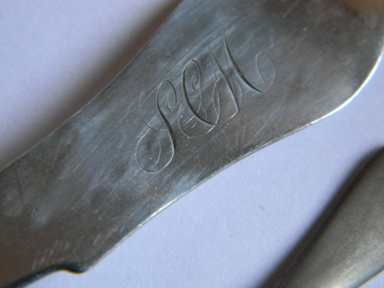 The monogrammed spoon features the monogram SCM. The back of the spoon is marked Louisville. The bowl of the spoon does have some dents as seen in the pictures.