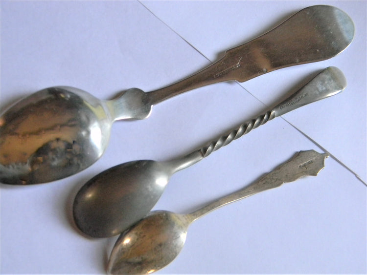 h632 Set of 3 Vintage Collectible Spoons Brooks, Coin Silver, Monogram
