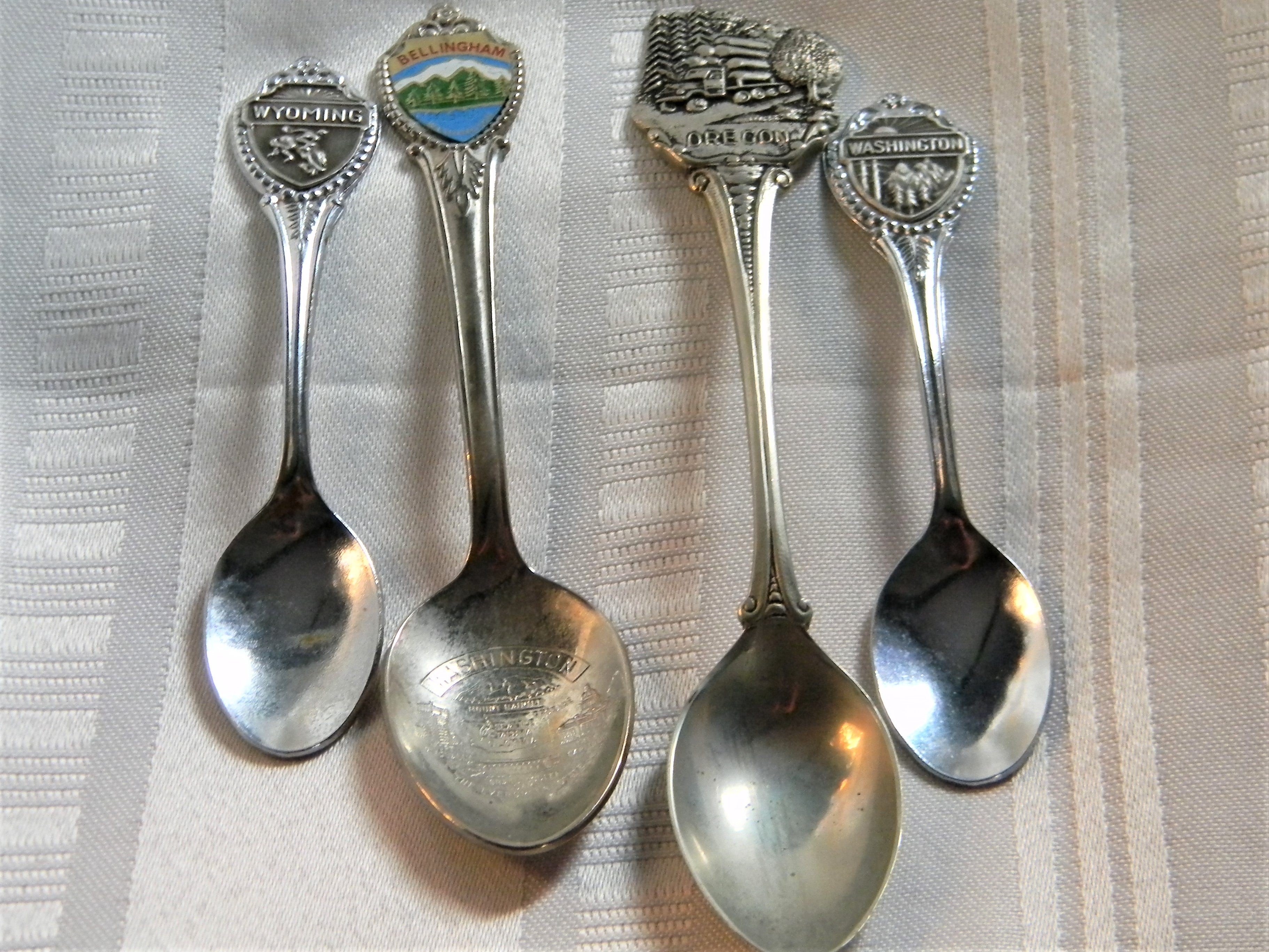 h605 Set of 4 Vintage Collectible Spoons 2 Washington, Wyoming, Oregon