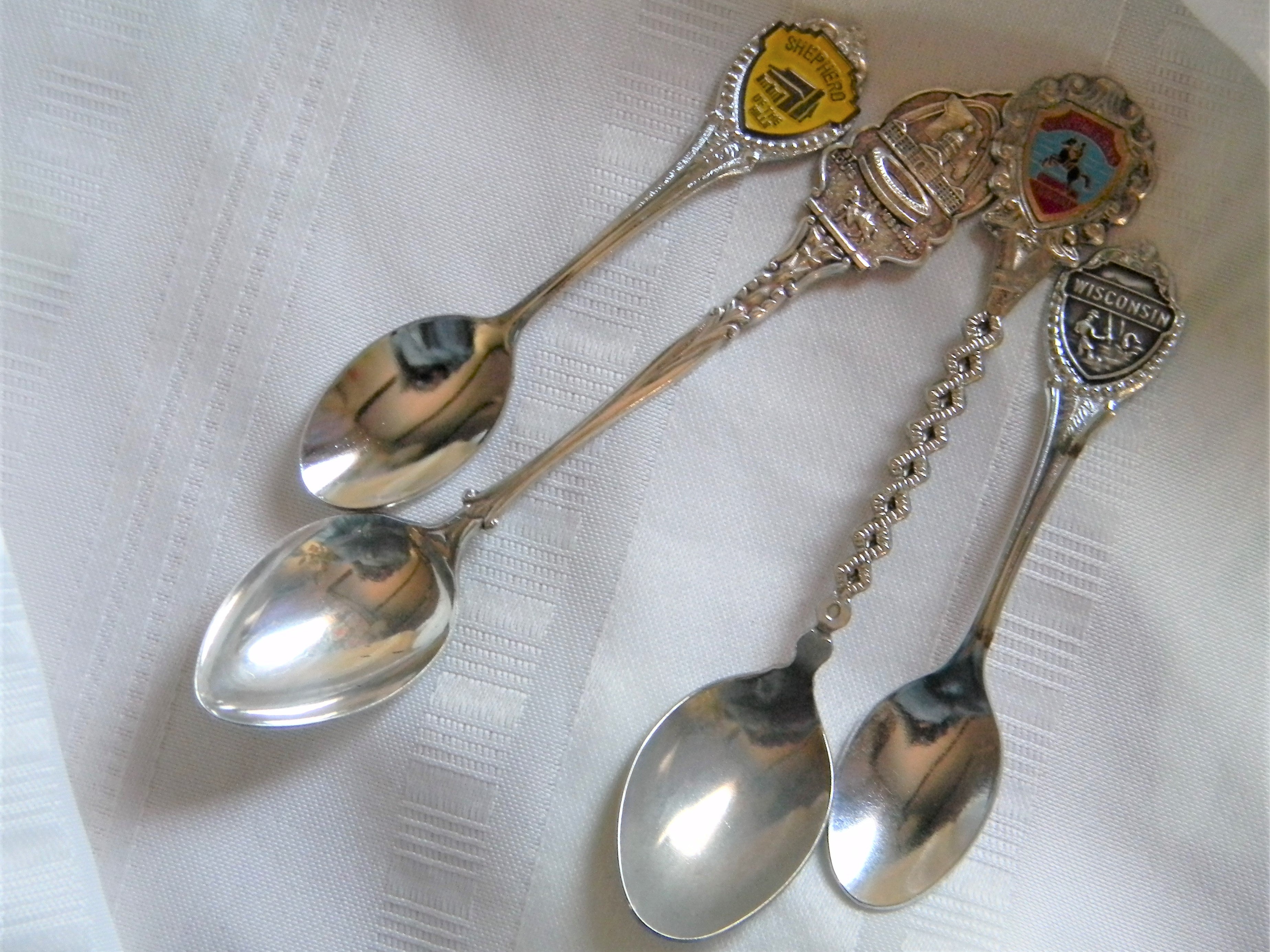 h620 Set of 4 Collectible Spoons Shepard Hills Wisconsin New Orleans St Louis