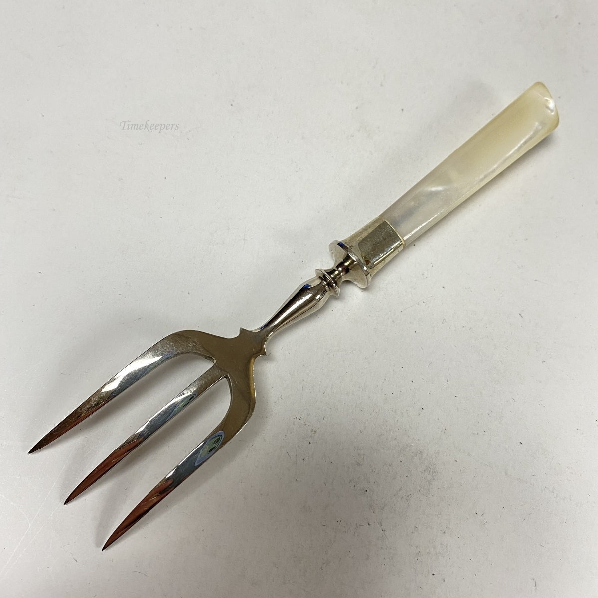 m046 Vintage Collectible Silver Tone Decorative Cocktail Fork with Pearl Handle