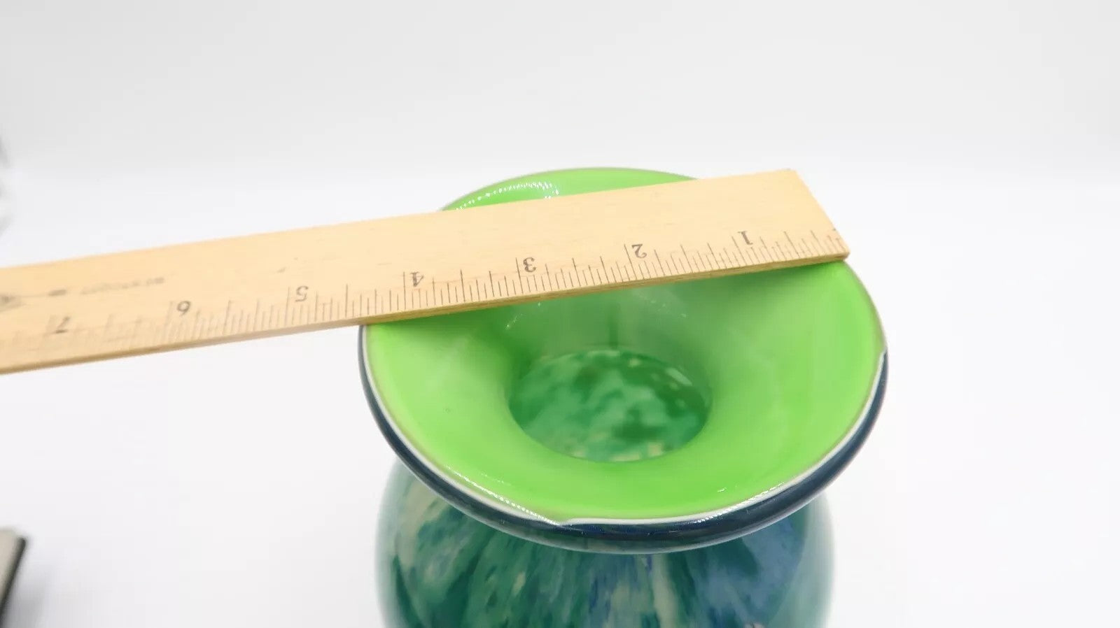 For Sale: (1) t473 Pretty Colorful Green Blue Vase Heavy 8 1/2" tall
