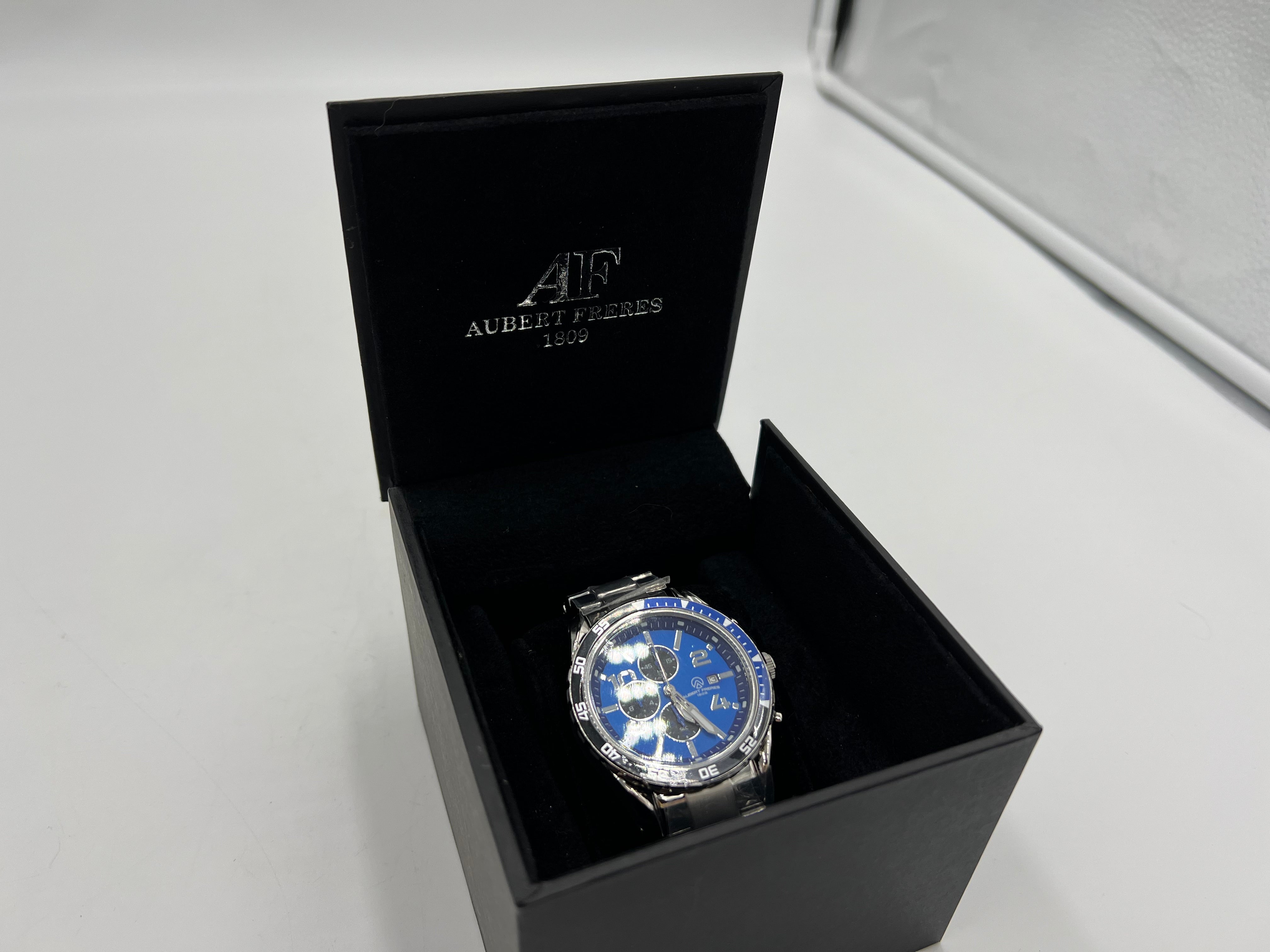 t855 Unique Aubert Freres Stainless Steel Blue Face Wrist Watch