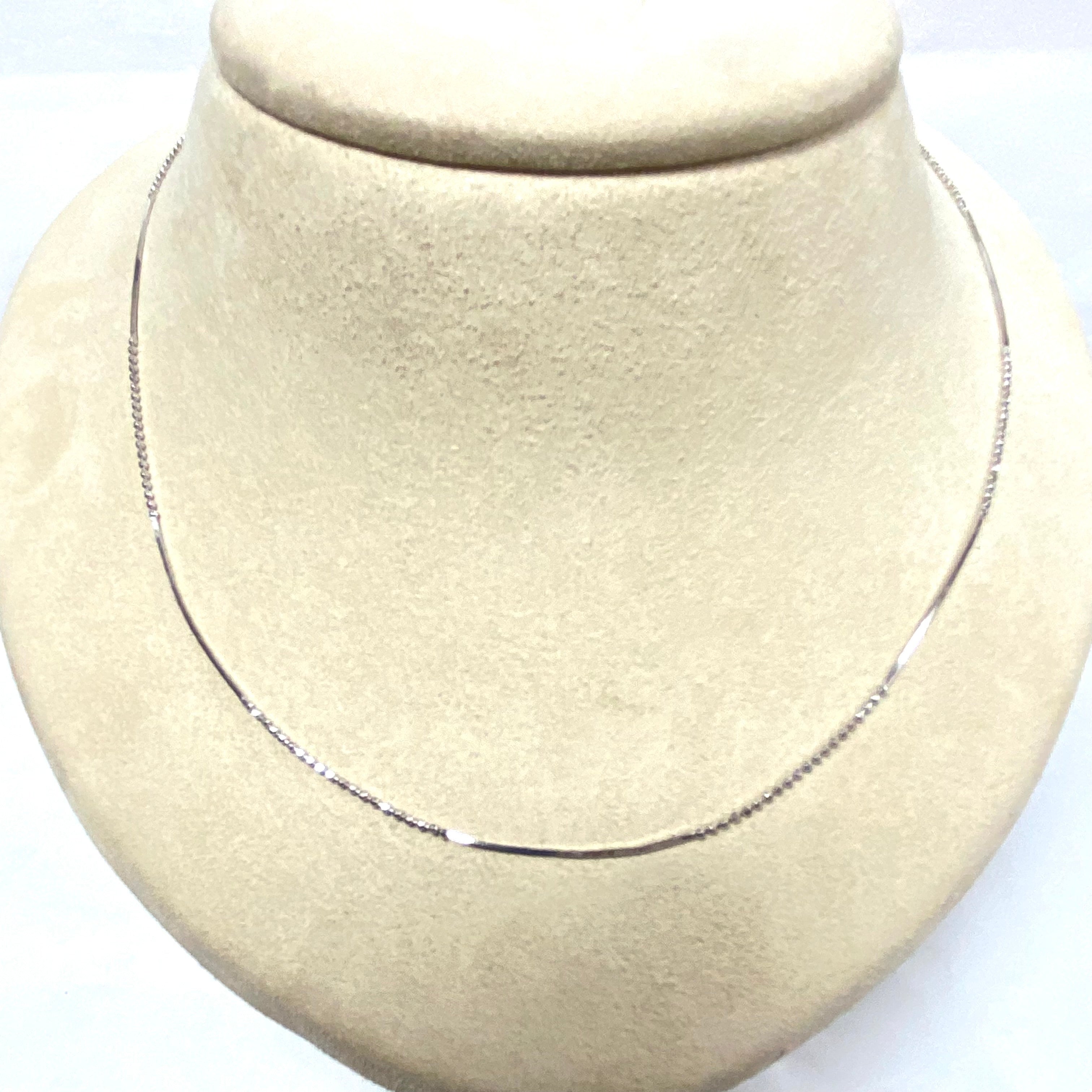u535 Vintage 14K White Gold Box Chain Necklace 17.5" Diamond Cut Egg Pendant