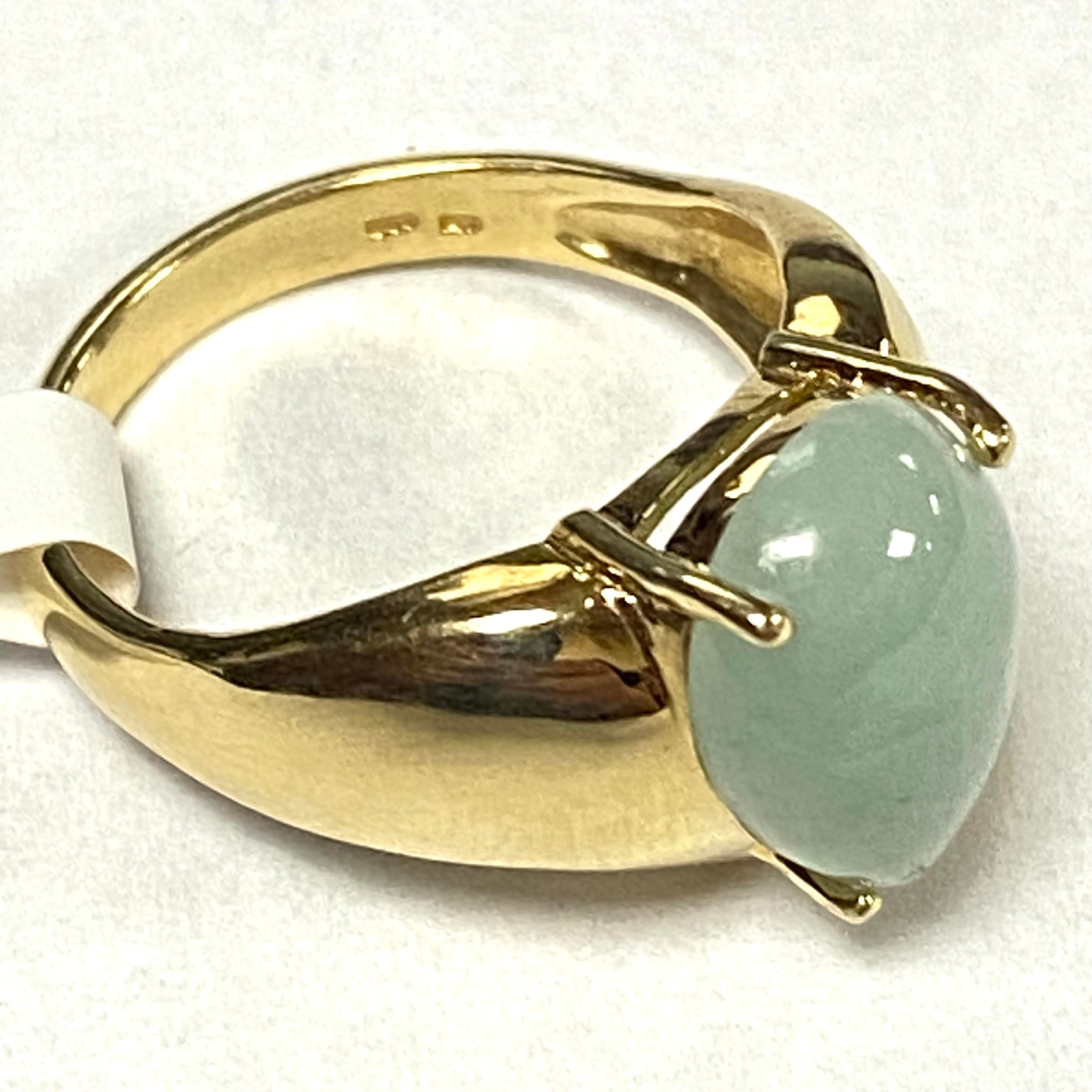 u499 Vintage 14k Yellow Gold Teardrop Green Jadeite Gemstone Ring Sz 6