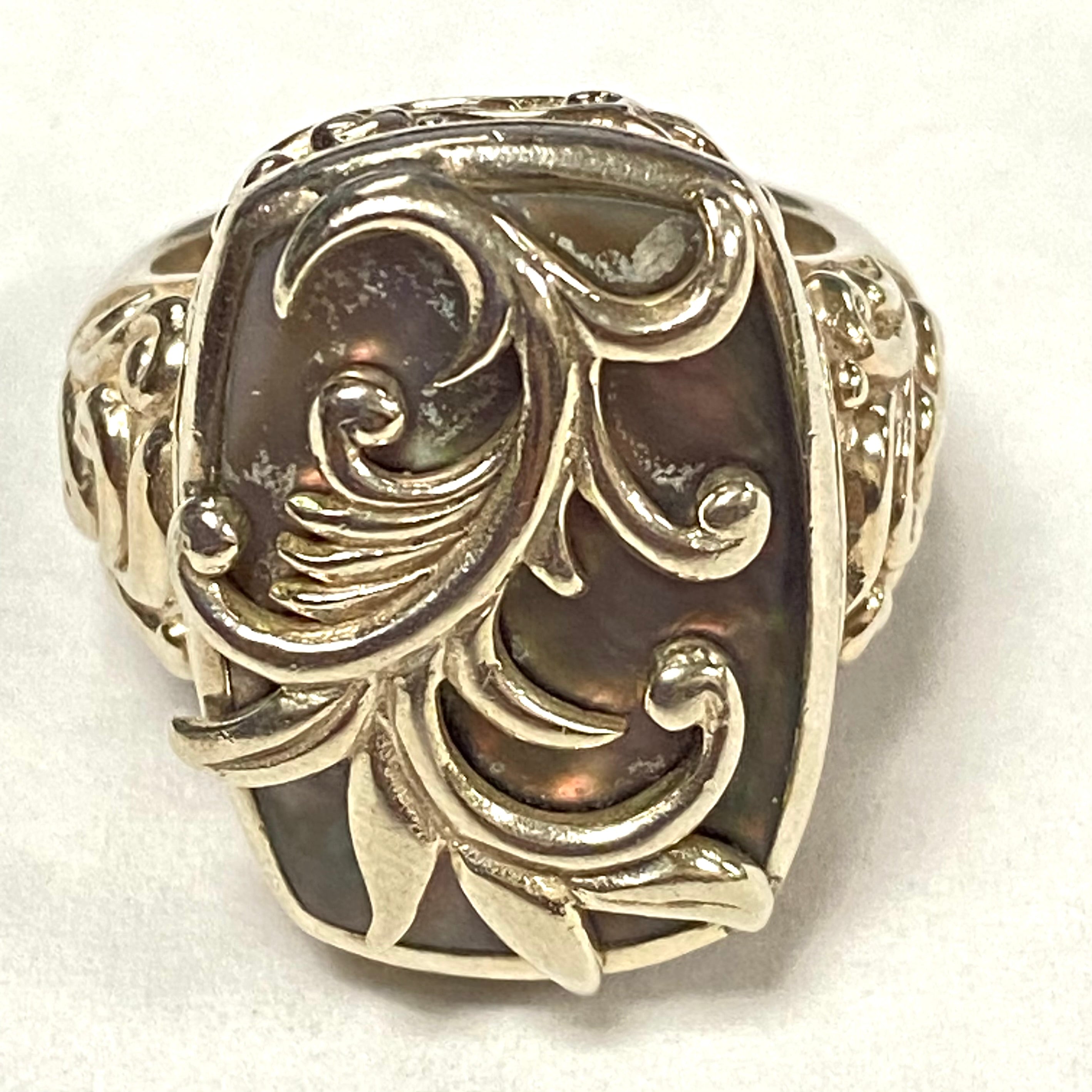 u501 Vintage Sterling Silver 925 Carved Carved Floral Band Ring Size 8