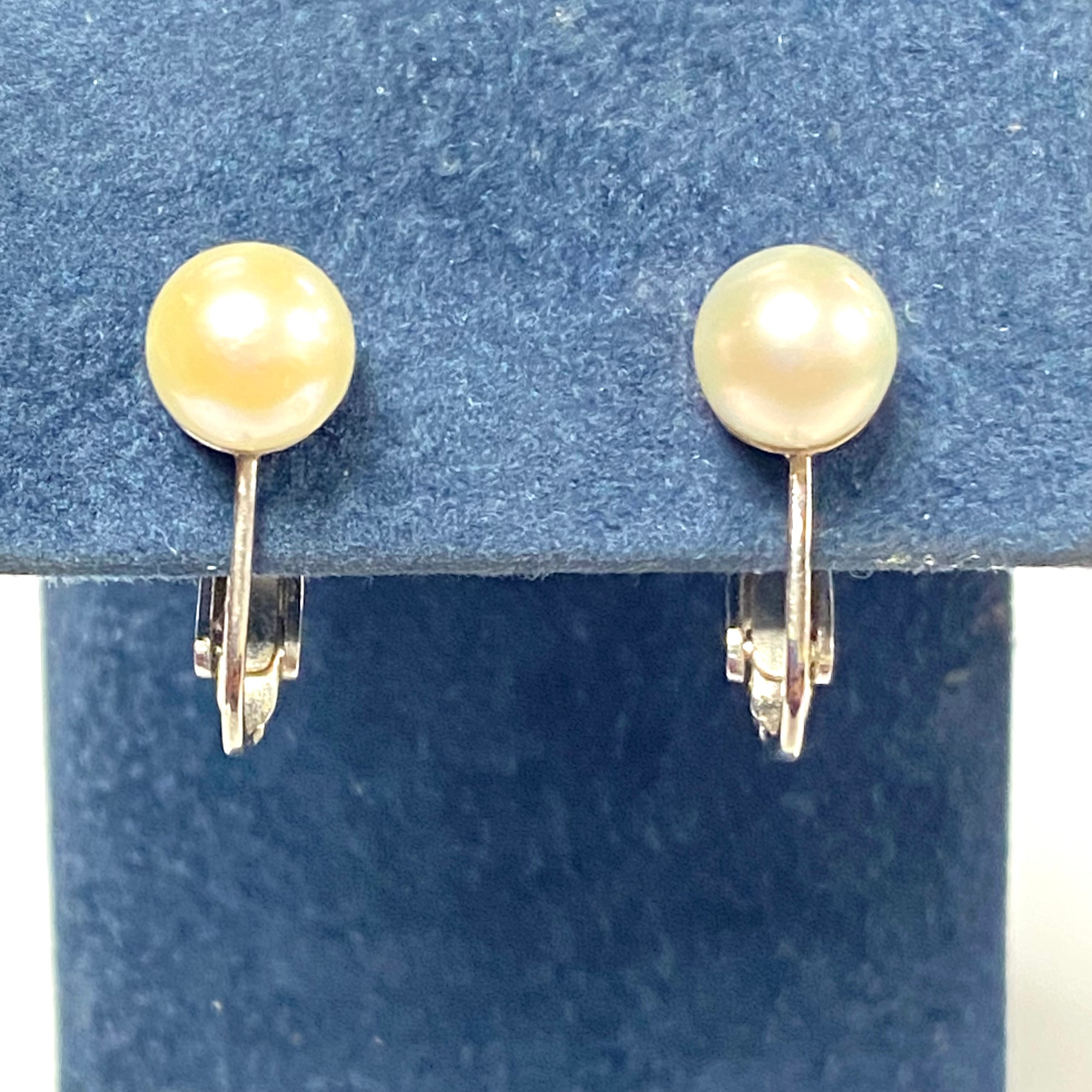 u512 Vintage 14K White Gold Fancy Round Pearl Earrings