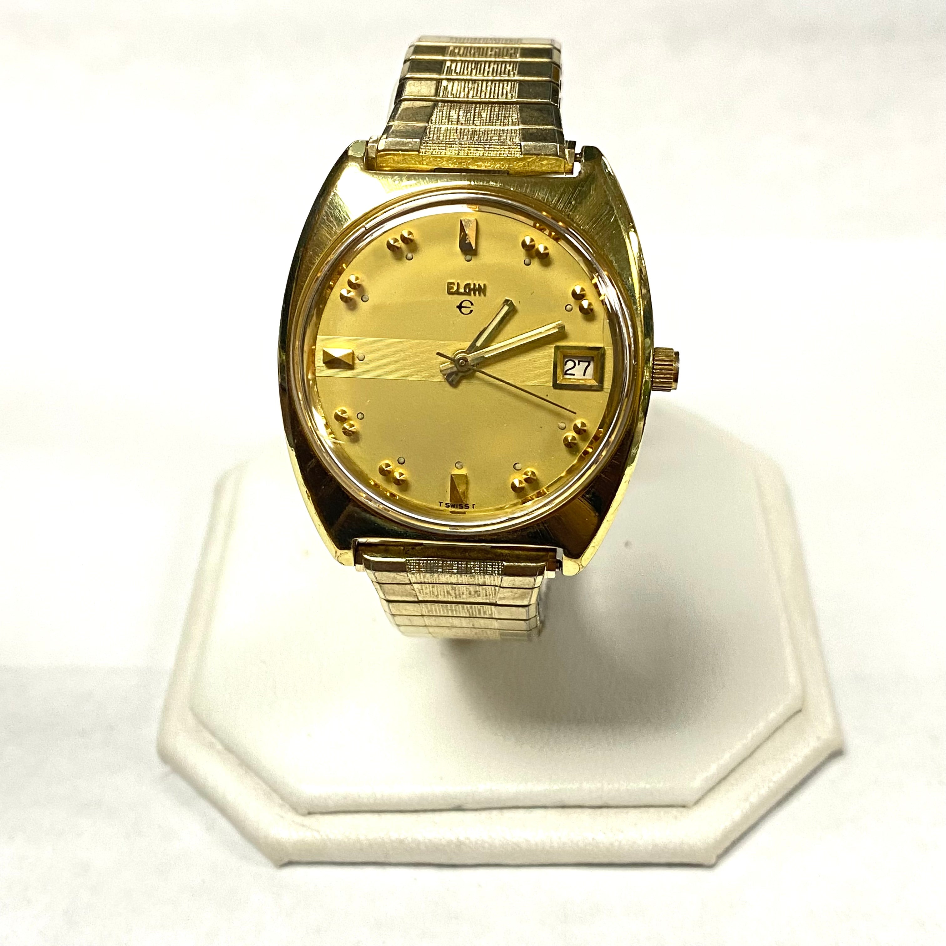 u517 Vintage ELGIN Swiss Mechanical Stainless Steel Gold Tone Wrist Watch 1970's